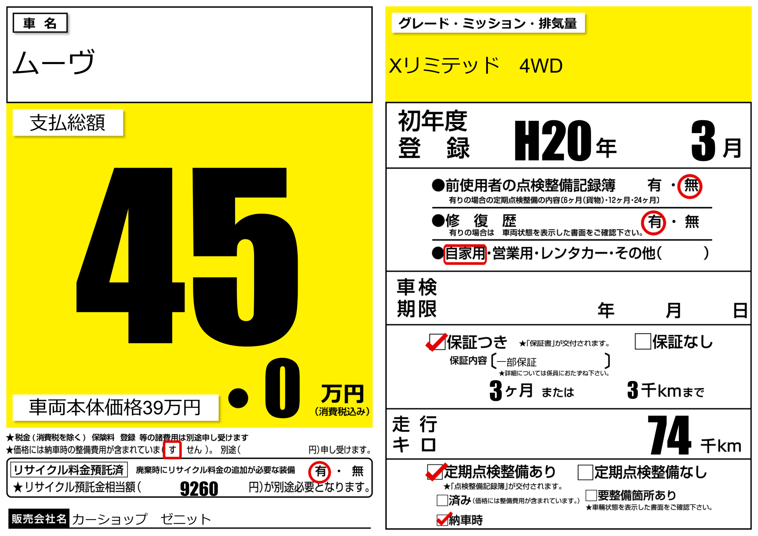 | 車名 | ムーヴ | グレード ミッション 排気量 |