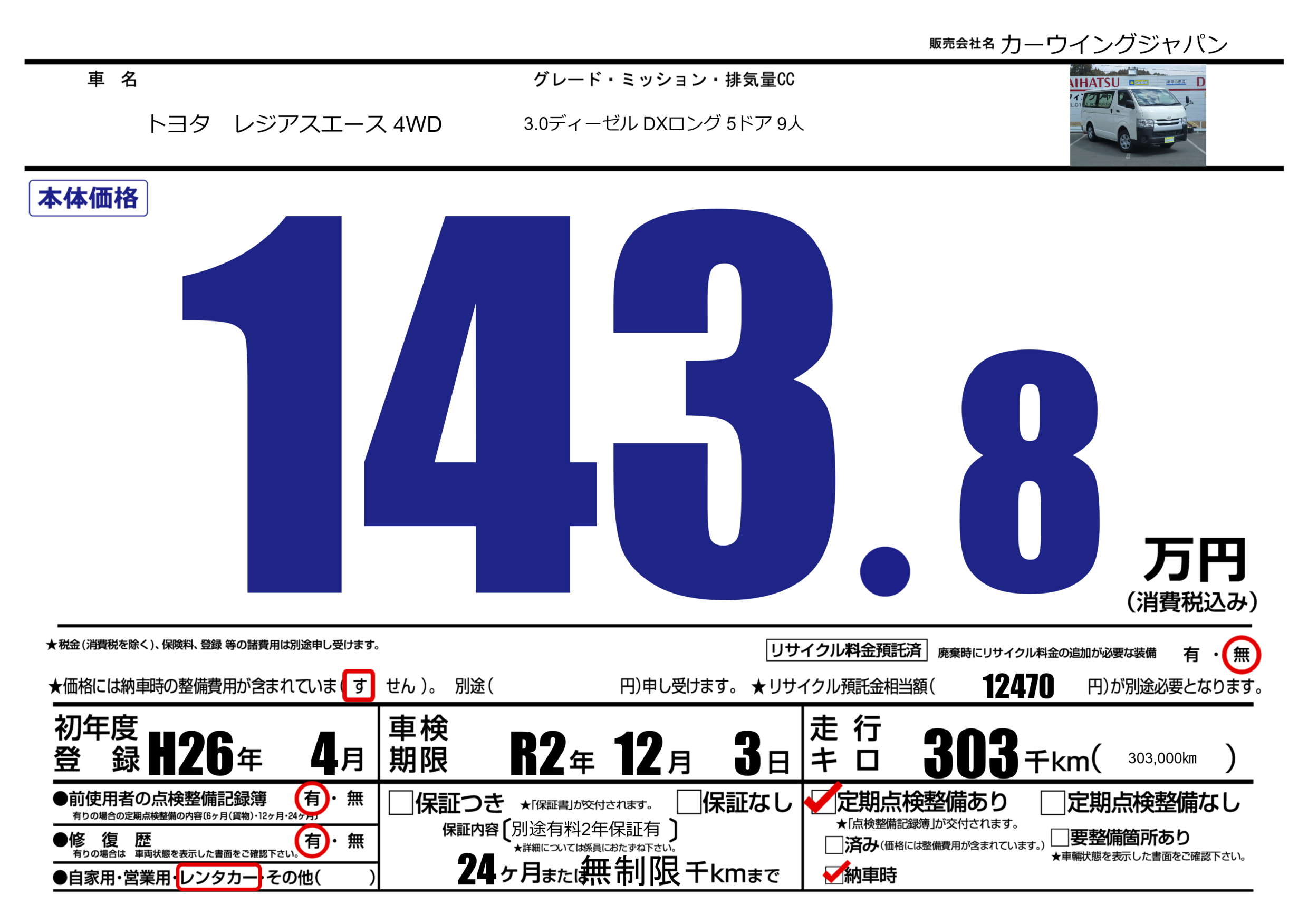 あり | 車検制限 | R2年12月3月 |