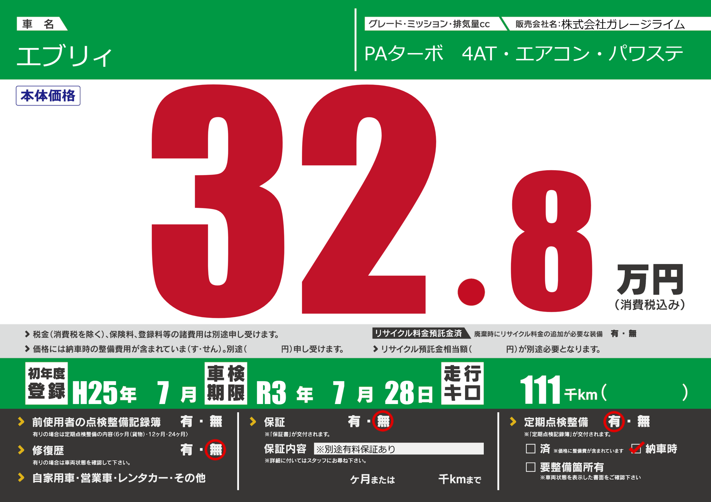 なし | 車検制限 | R3年7月28月 |
