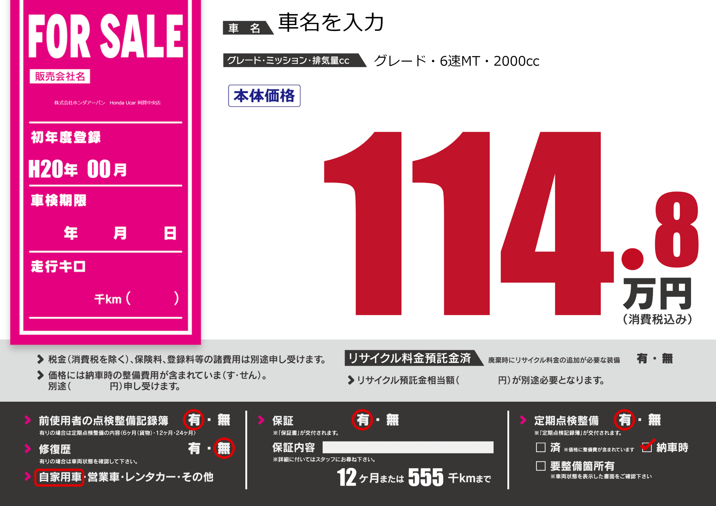 | 定期点検整備 | 定期点検整備あり 納車時あり | ||