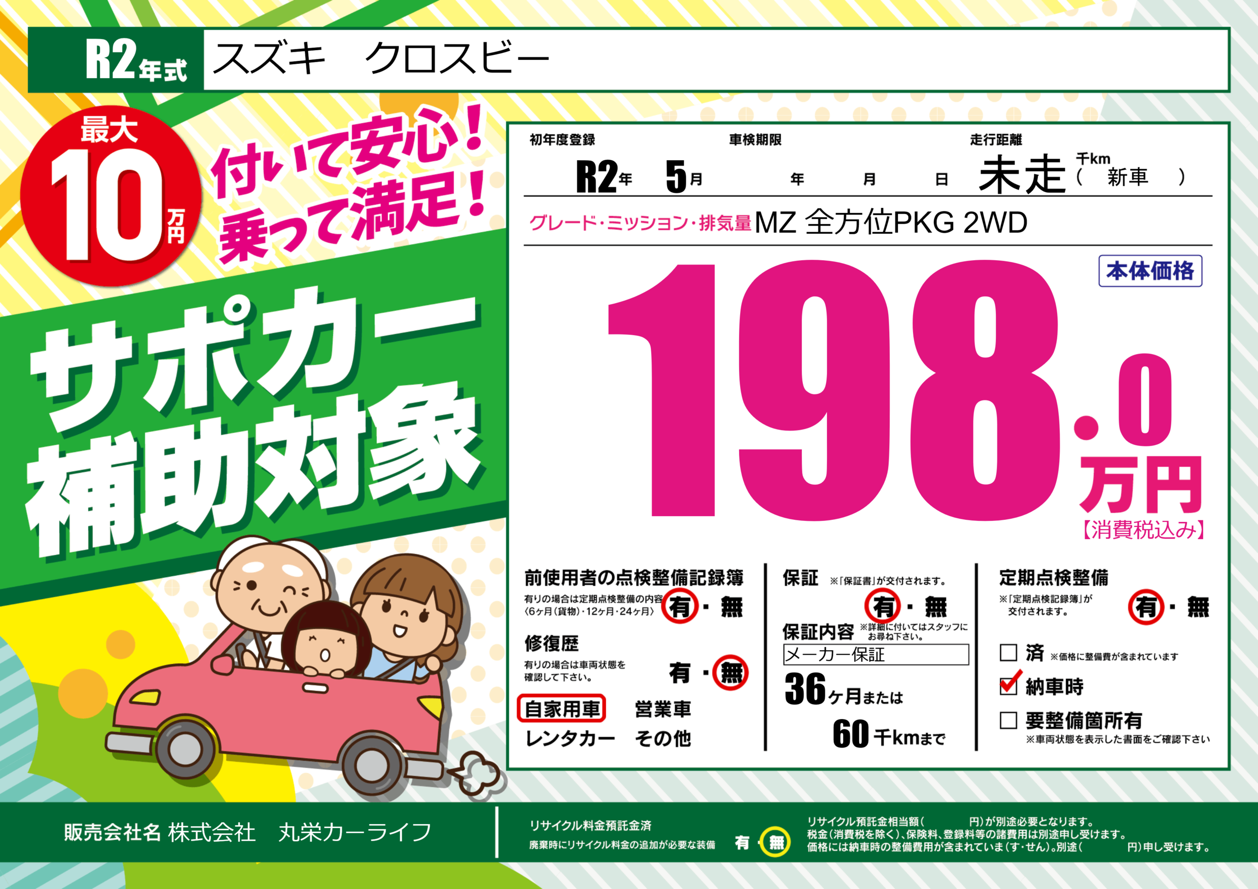 | 定期点検整備 | 定期点検整備あり 納車時あり | ||