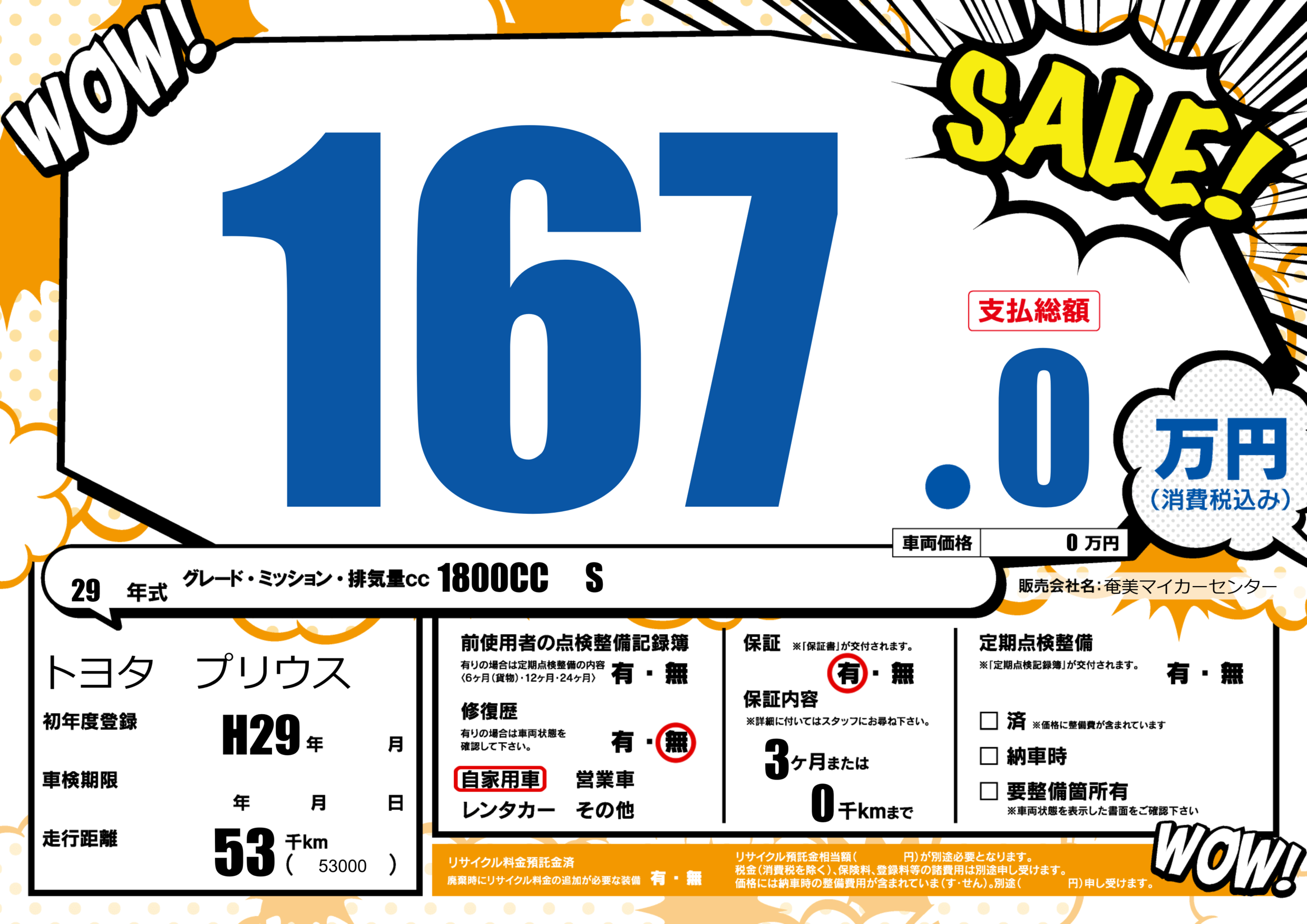 | 車名 | トヨタ プリウス | グレード ミッション 排気量 |