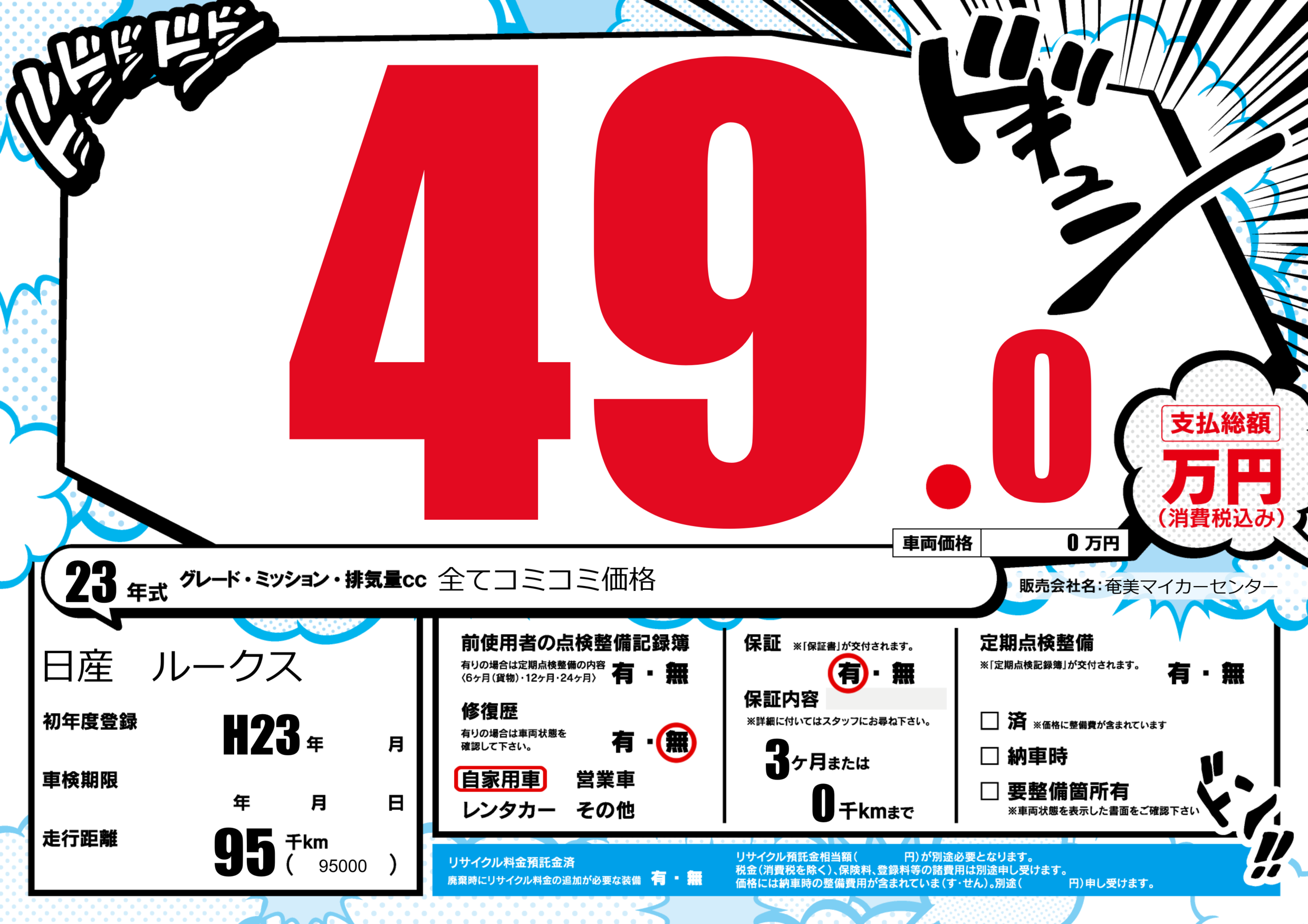 保証付き 保証内容(---) 3ヶ月または(0)千kmまで |