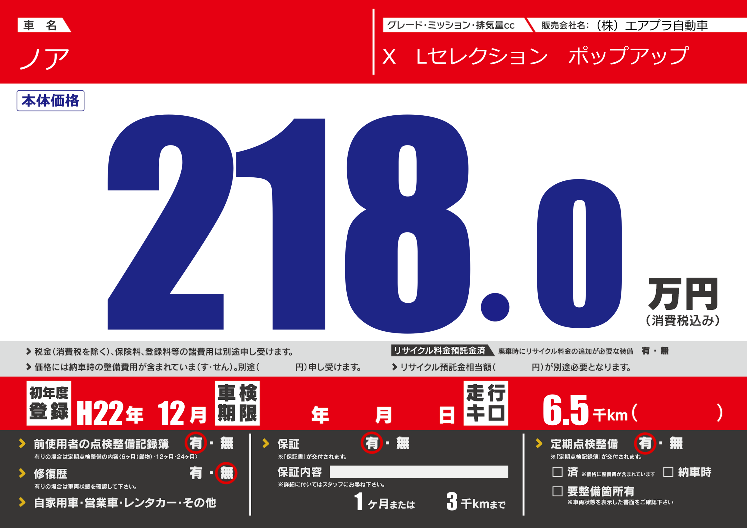 | 初年度登録 | H22年12月 | ||