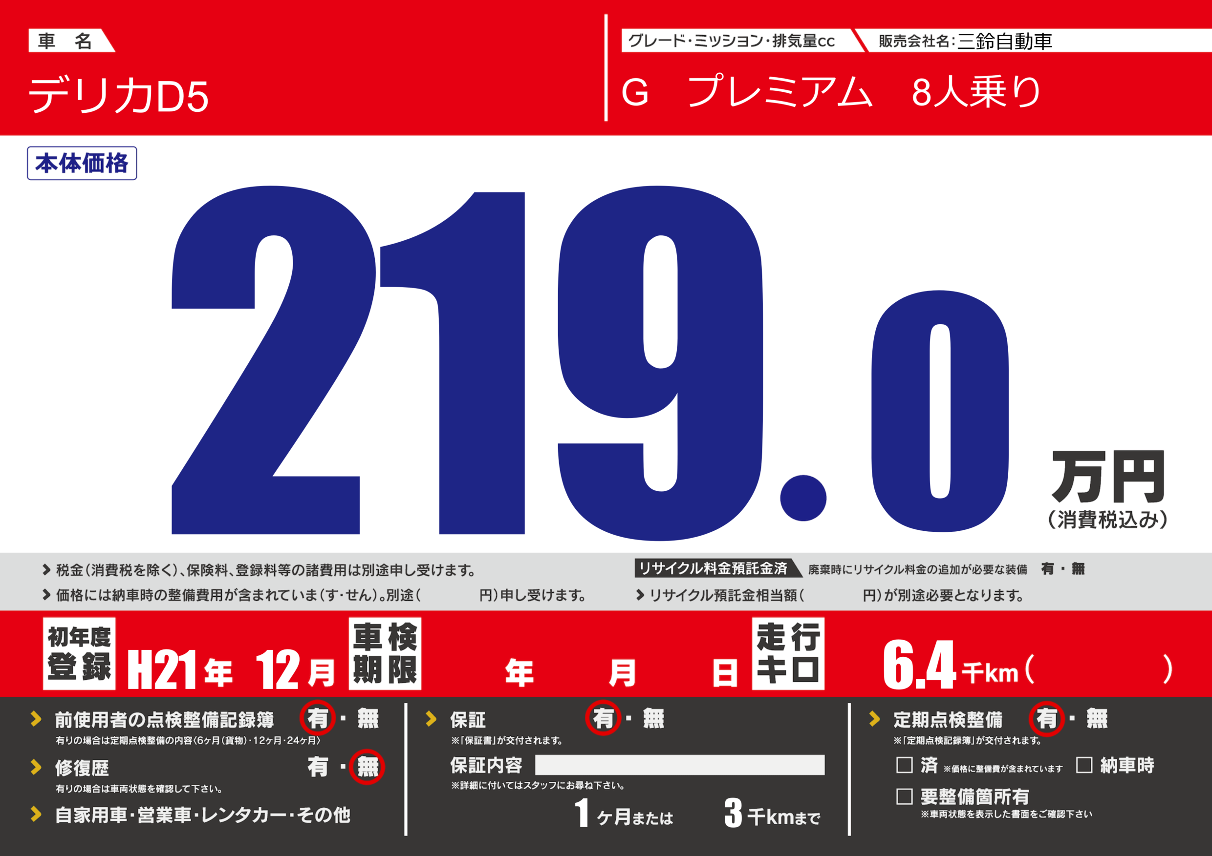 保証付き 保証内容(---) 1ヶ月または(3)千kmまで |