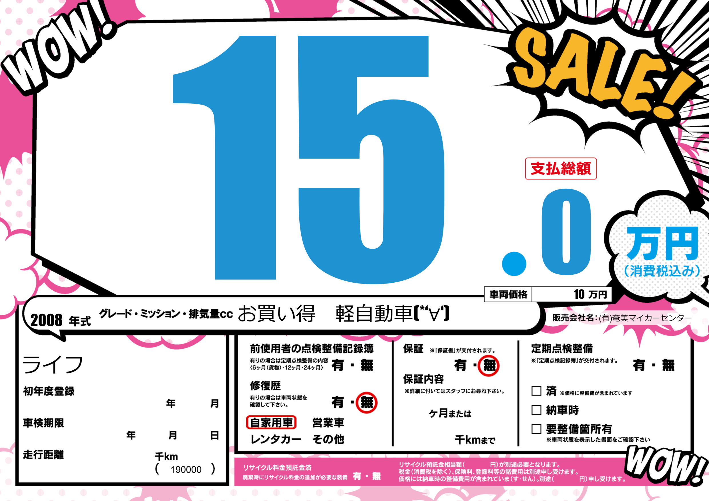 | 車検制限 | - 年 - 月 - 日 | ||