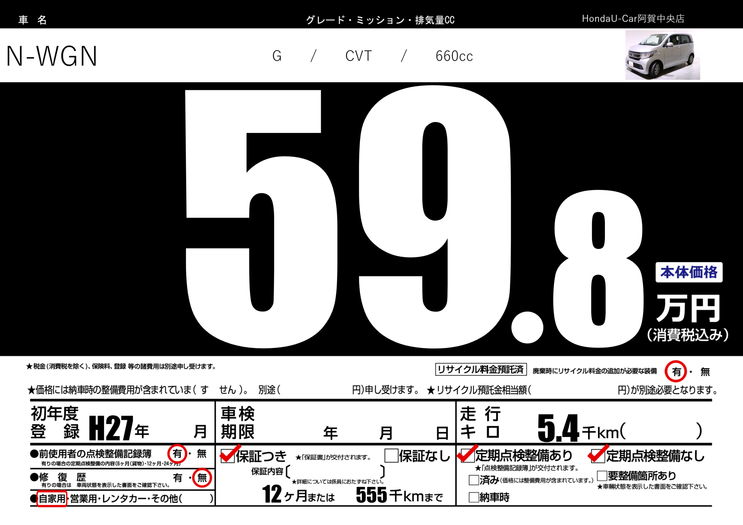 | 車名 | N-WGN | グレード ミッション 排気量 |