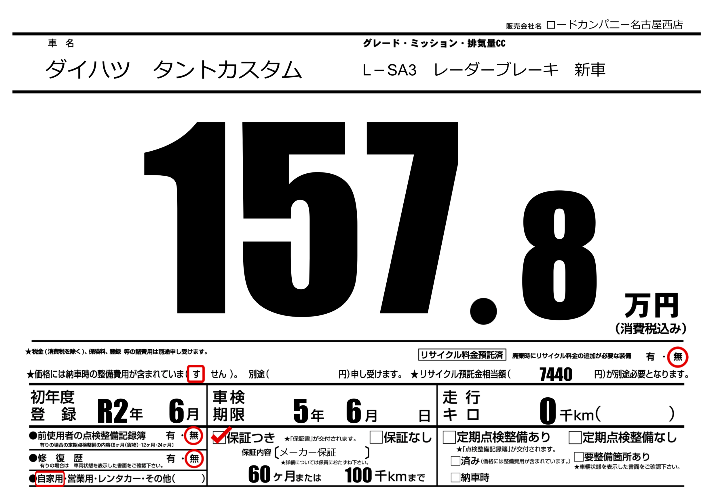 | 走行キロ | - | 初年度登録 | R2年6月 |