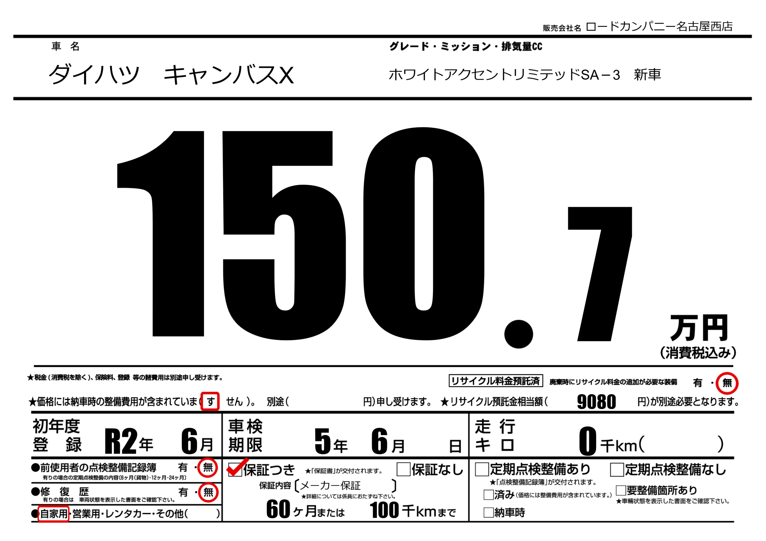 | 走行キロ | - | 初年度登録 | R2年6月 |