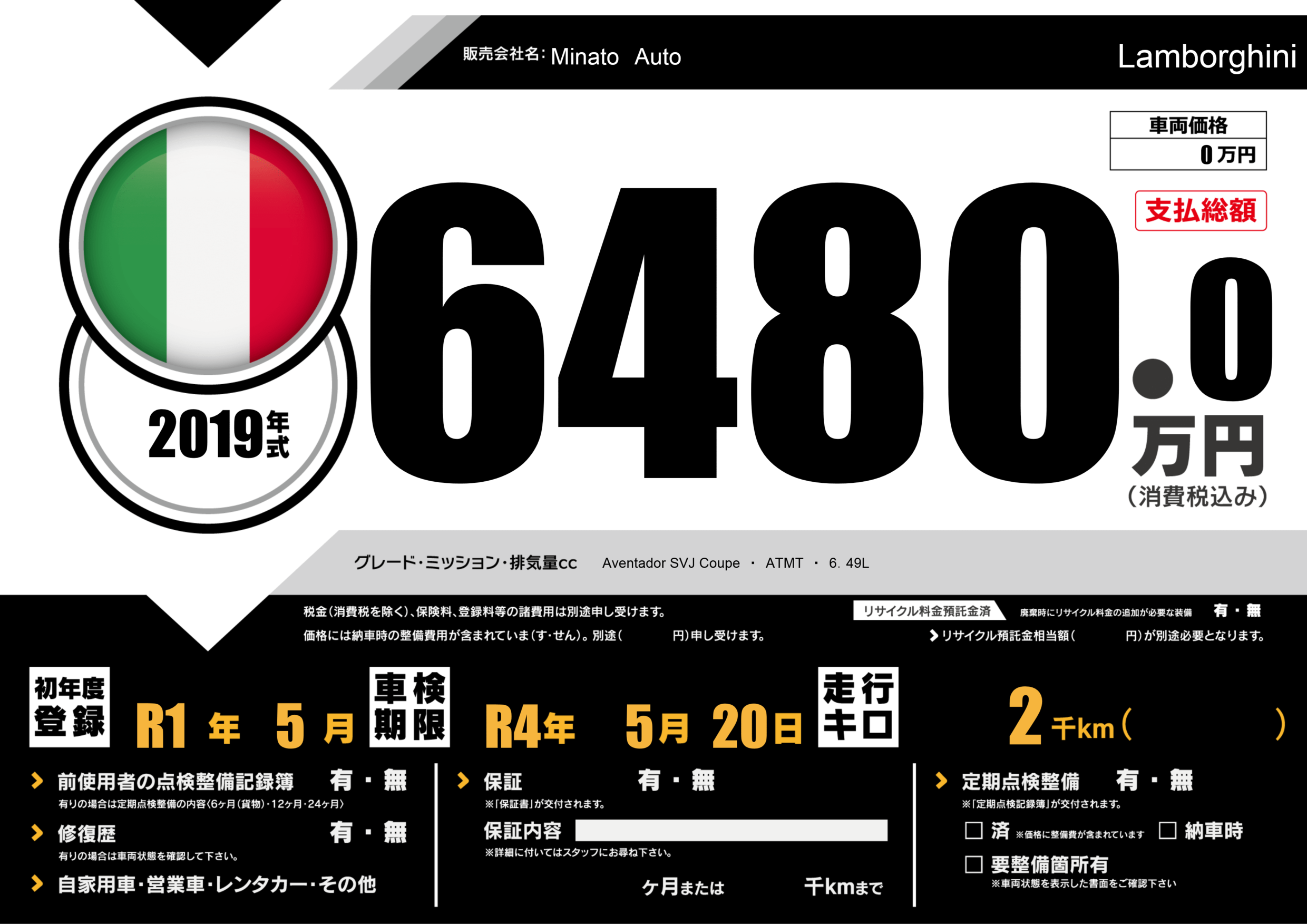 | 車名 | Lamborghini | グレード ミッション 排気量 |