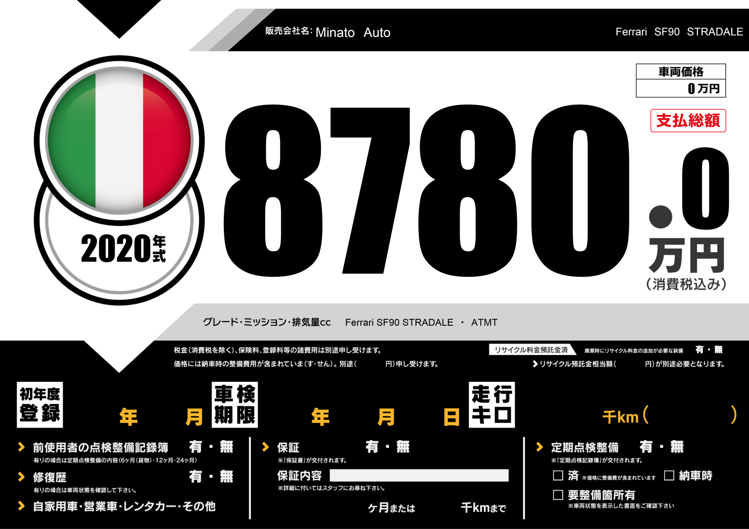 | 車名 | Ferrari SF90 STRADALE | グレード ミッション 排気量 |