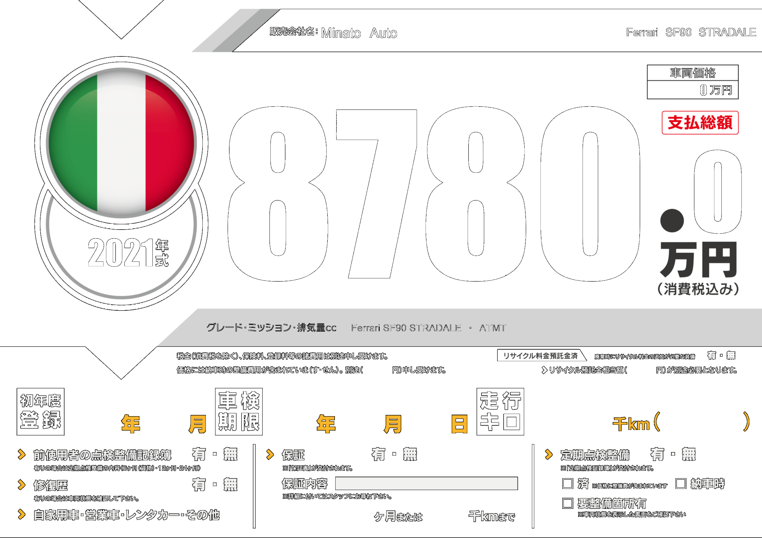 | 車名 | Ferrari SF90 STRADALE | グレード ミッション 排気量 |