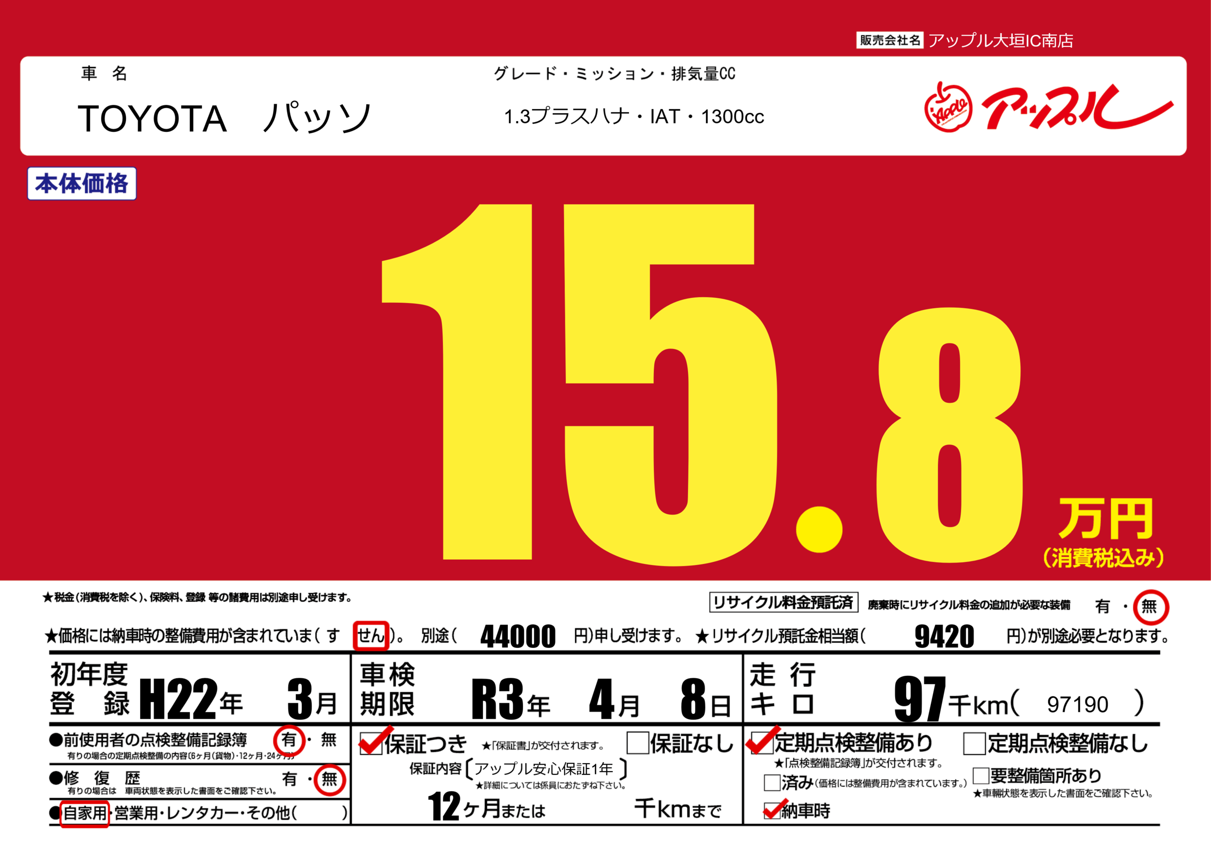 | 初年度登録 | H22年3月 | ||