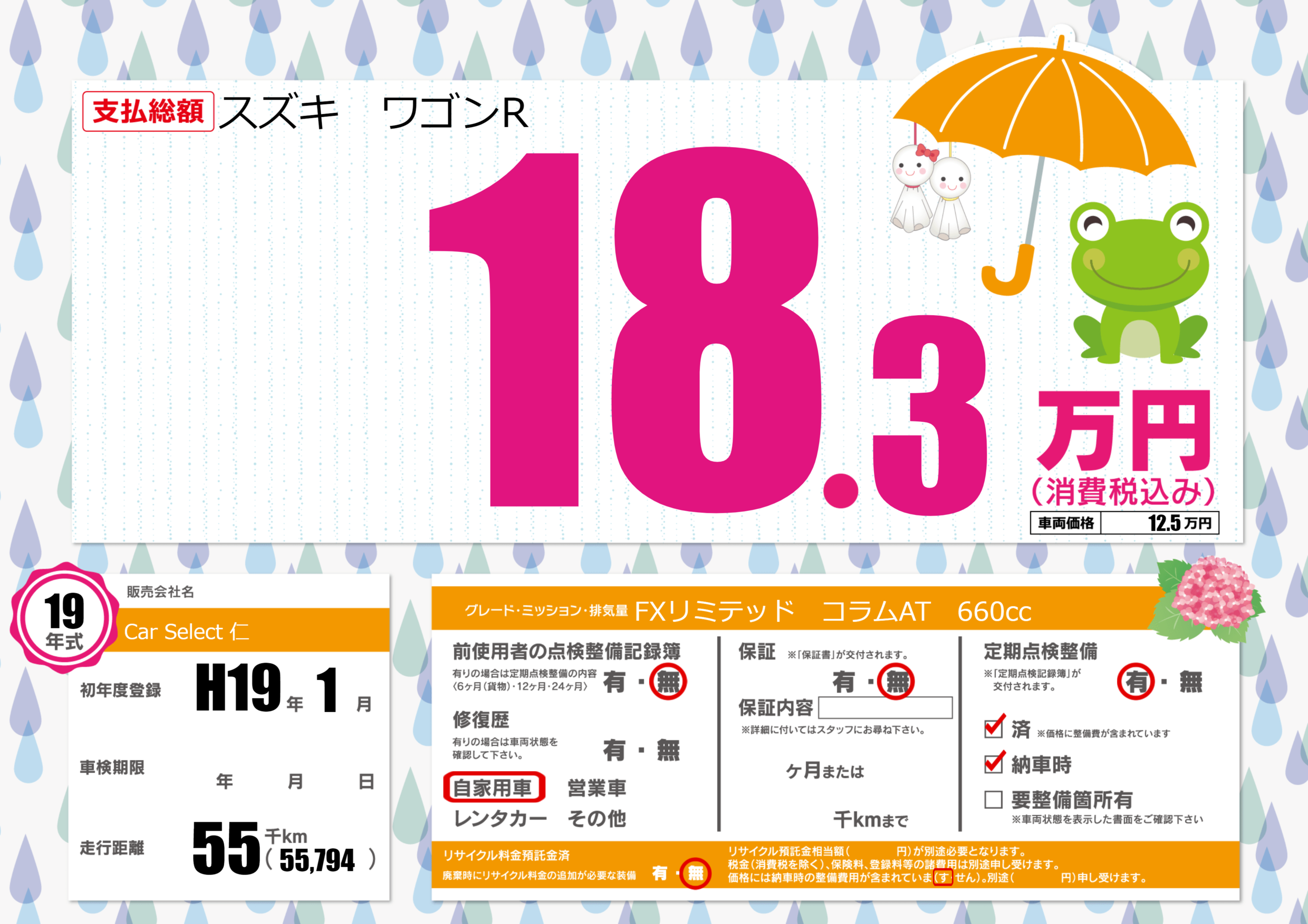 | 車名 | スズキ ワゴンR(売約済) | グレード ミッション 排気量 |