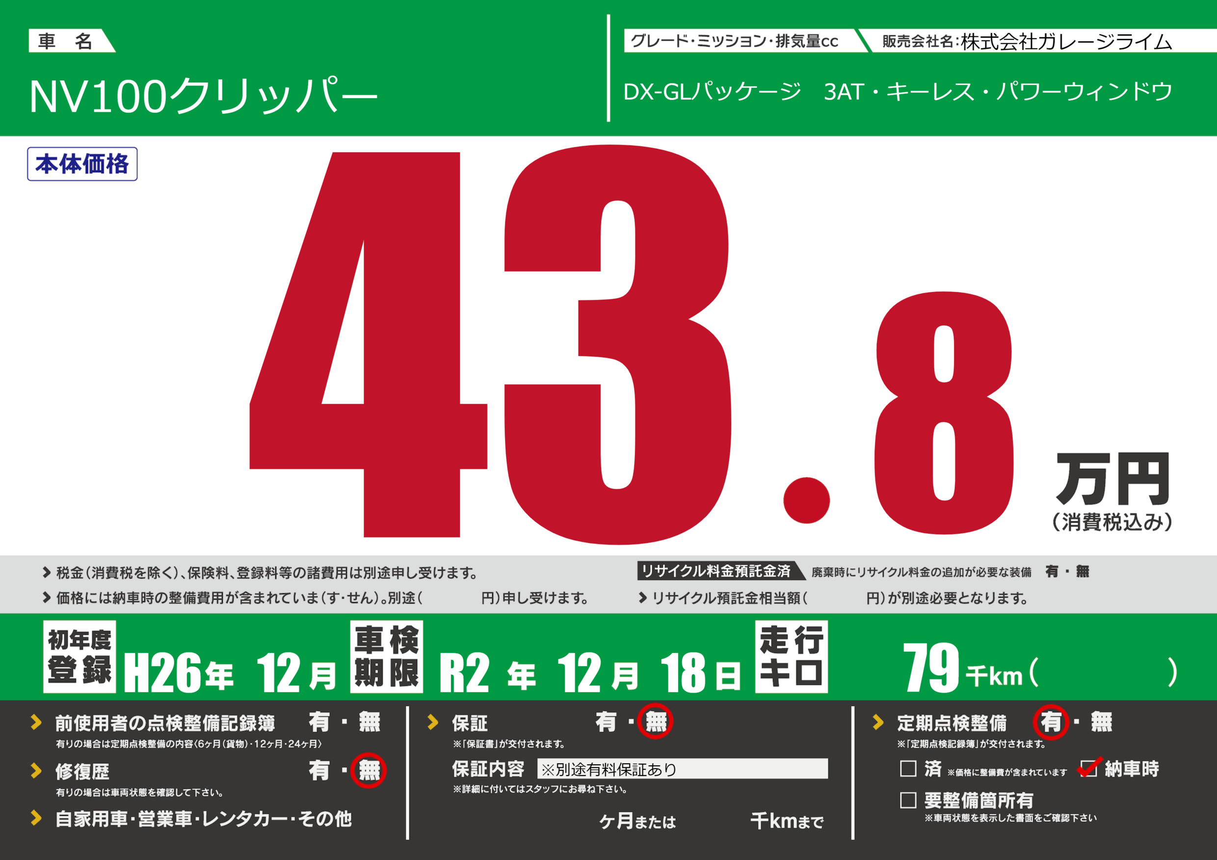 | 車名 | NV100クリッパー | グレード ミッション 排気量 |