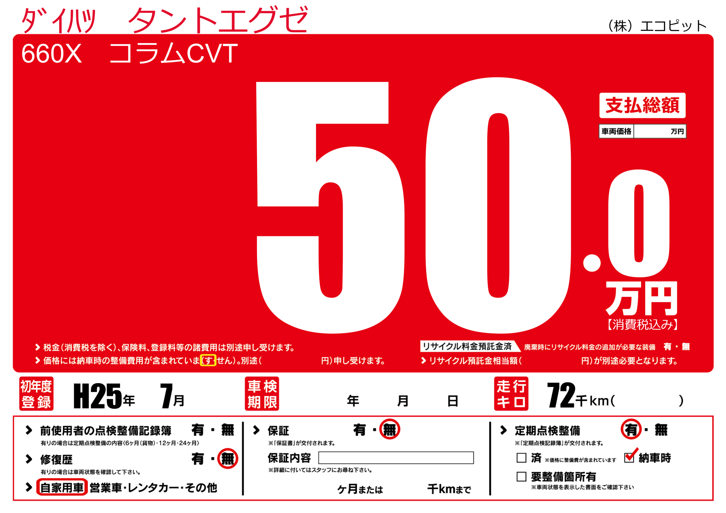 | 初年度登録 | H25年7月 | ||