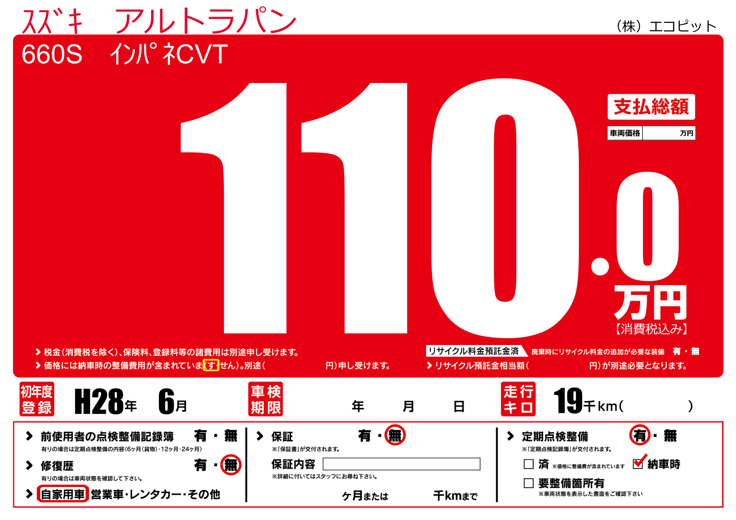 | 定期点検整備 | 定期点検整備あり 要整備箇所あり | ||