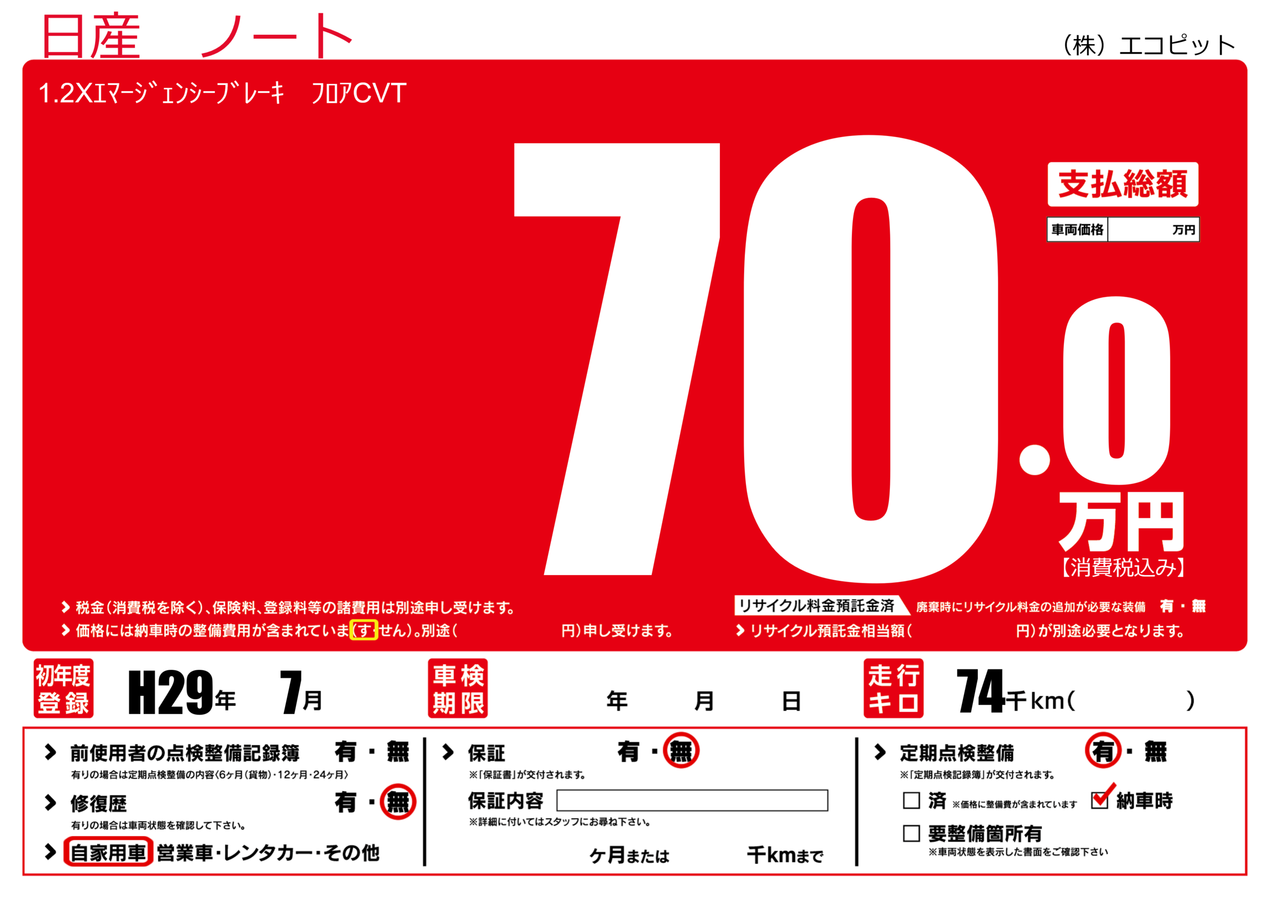 | 車名 | 日産 ノート | グレード ミッション 排気量 |