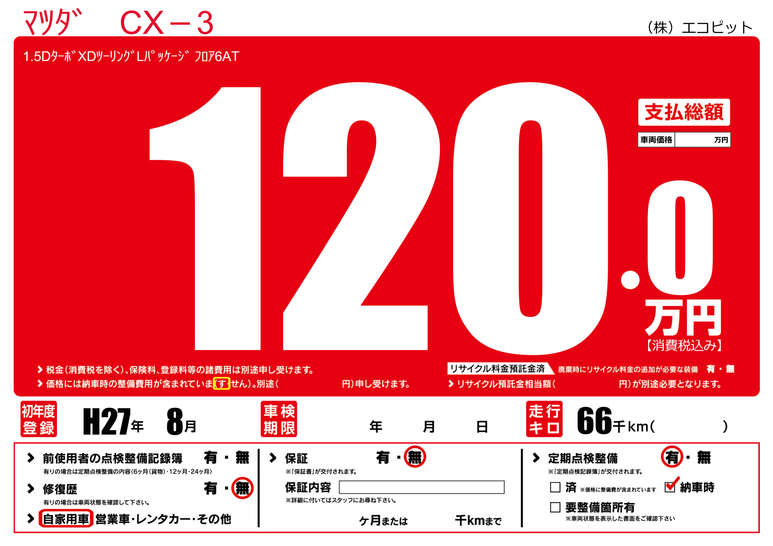 | 初年度登録 | H27年8月 | ||
