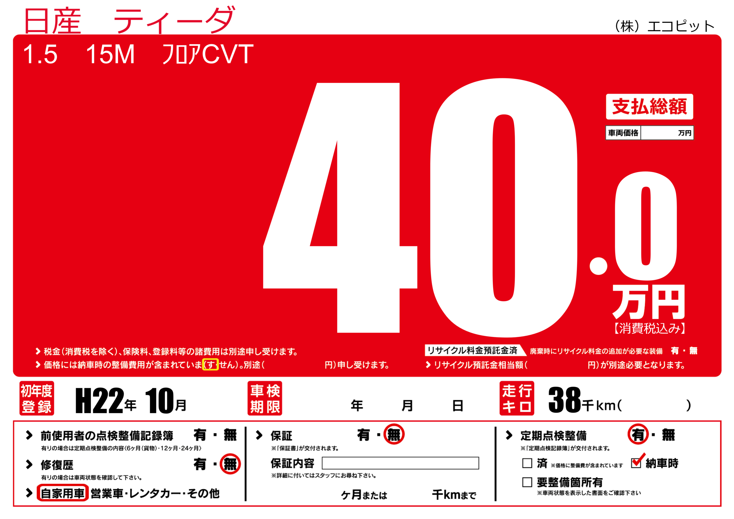 | 初年度登録 | H22年10月 | ||