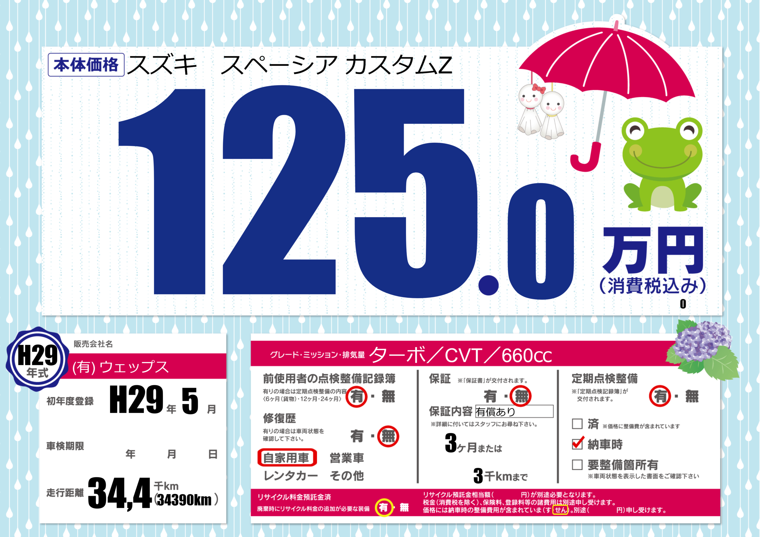 | 定期点検整備 | 定期点検整備あり 納車時あり | ||