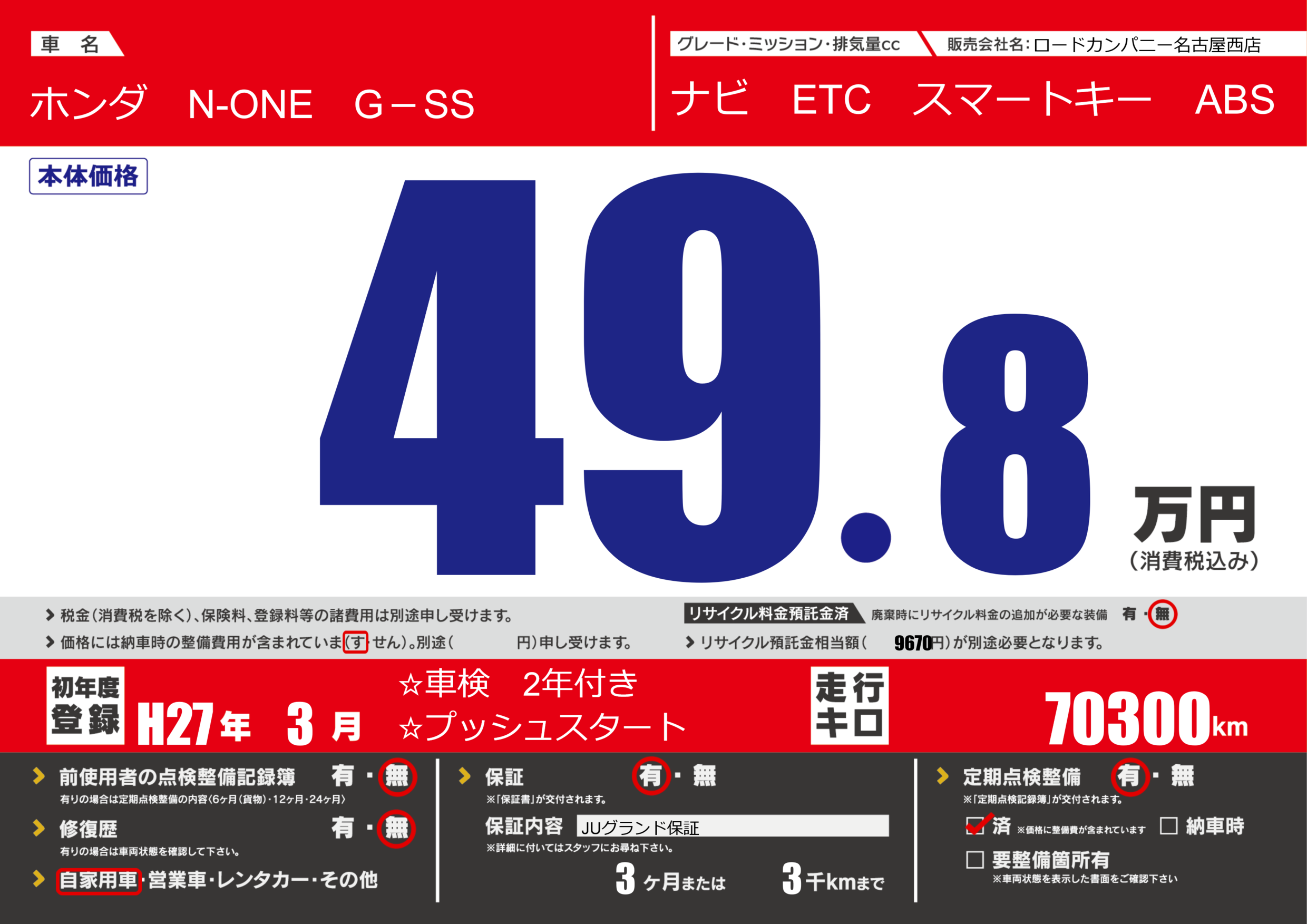 | 定期点検整備 | 定期点検整備あり 定期点検整備済み | ||