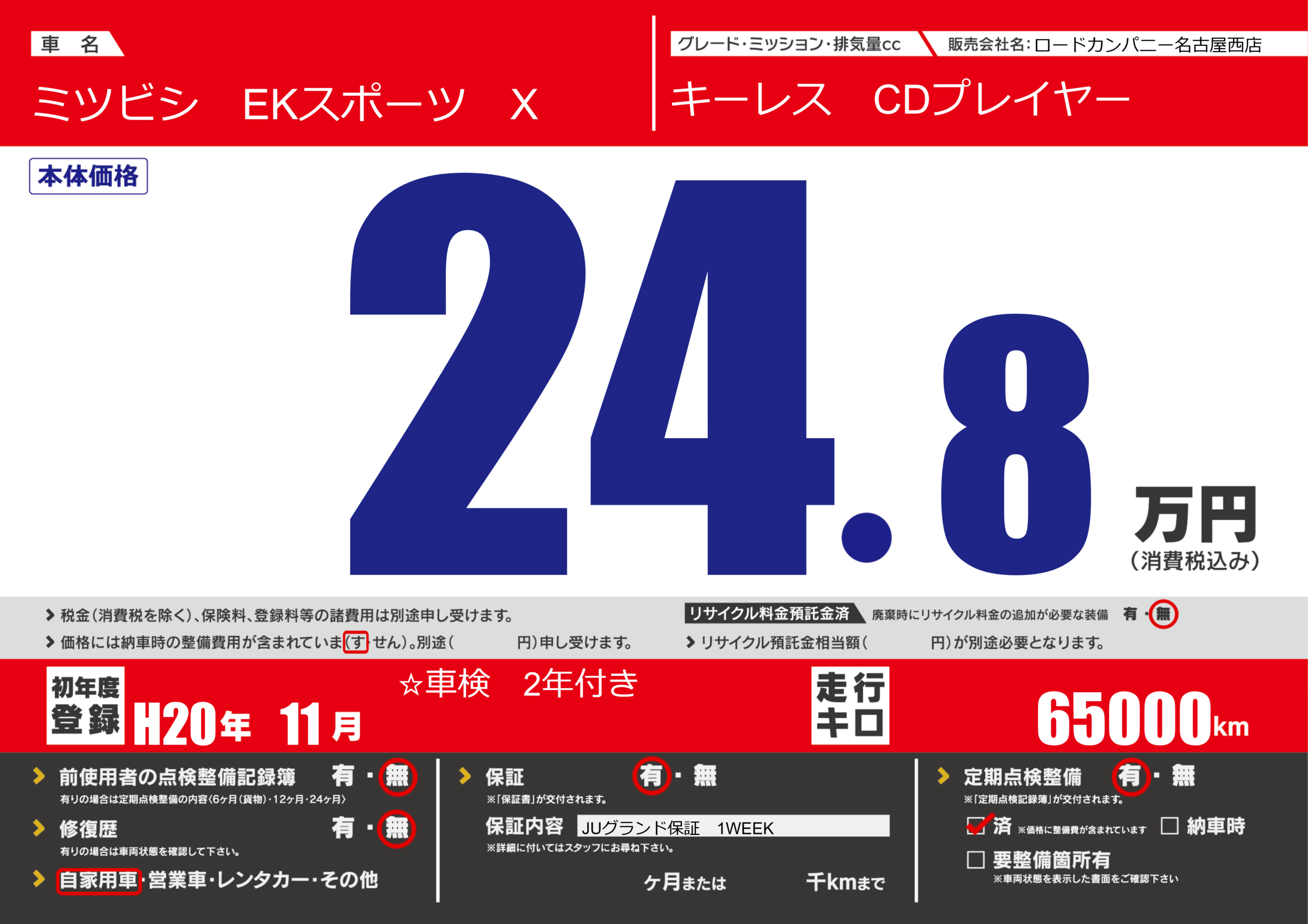 | 定期点検整備 | 定期点検整備あり 定期点検整備済み | ||