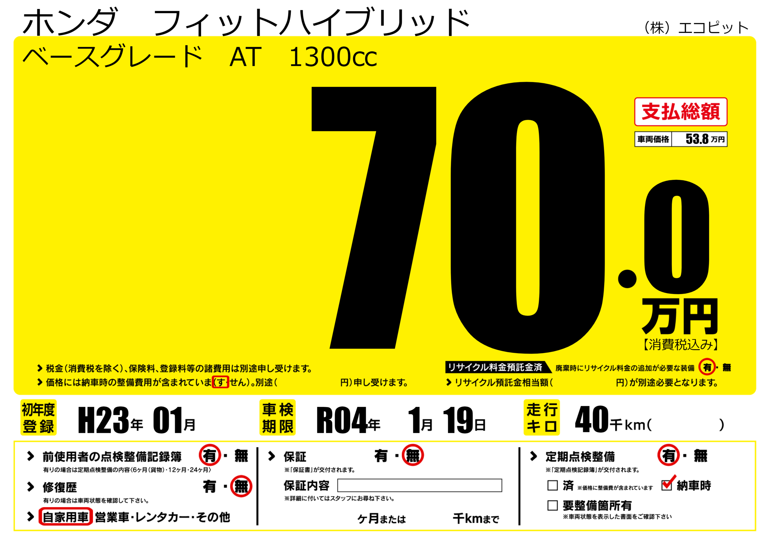 あり | 車検制限 | R04年1月19月 |
