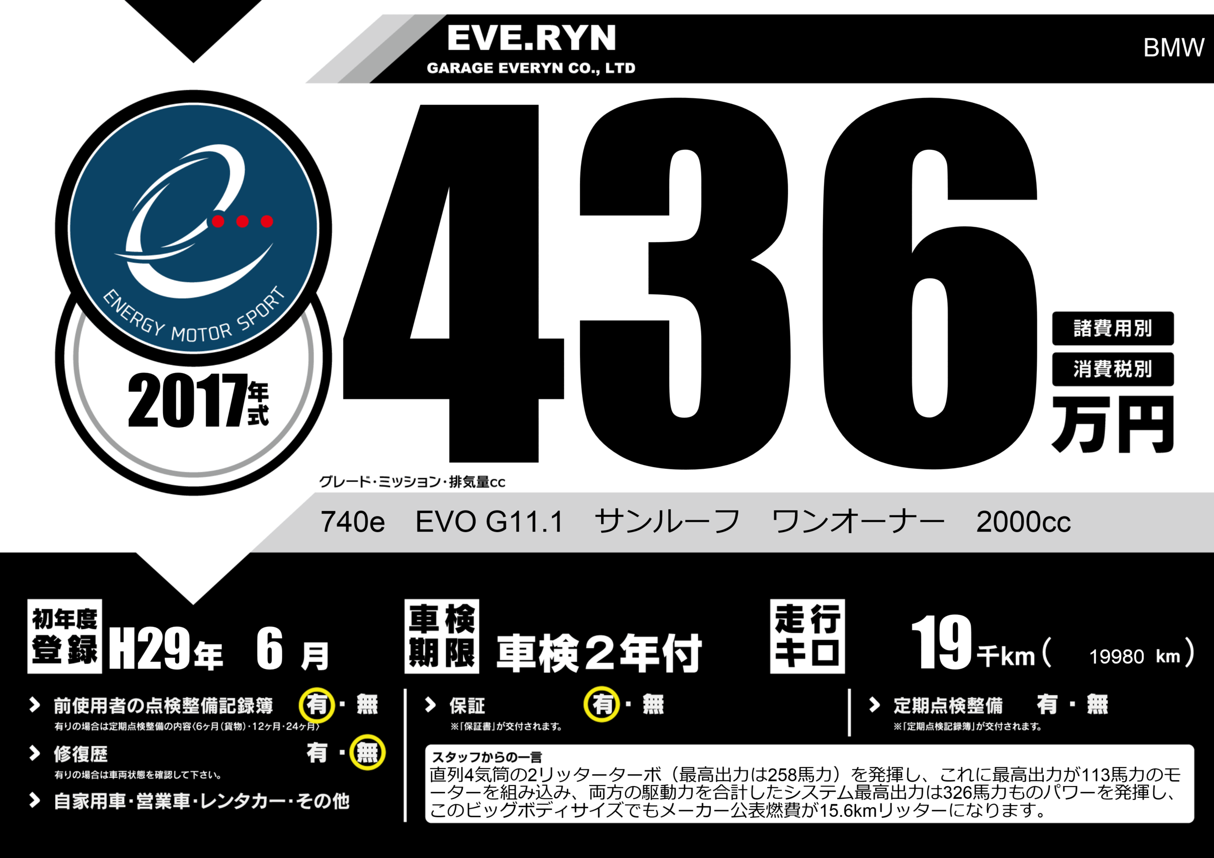 740e EVO G11.1 サンルーフ ワンオーナー 2000cc |
