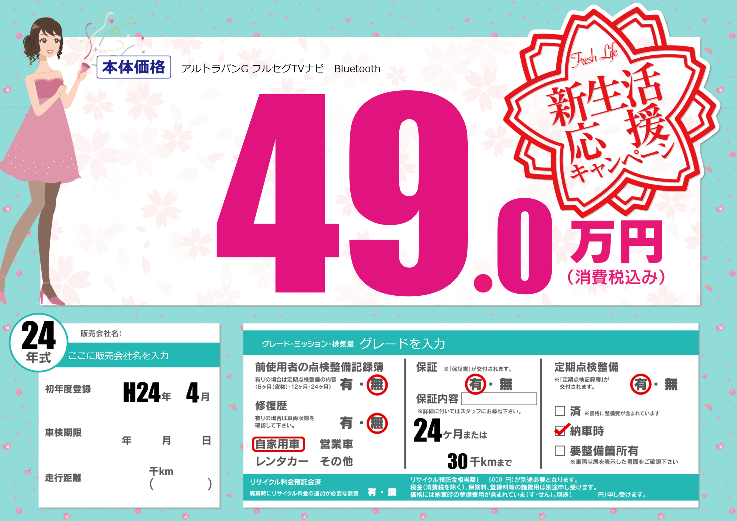 | 走行キロ | - | 初年度登録 | H24年4月 |