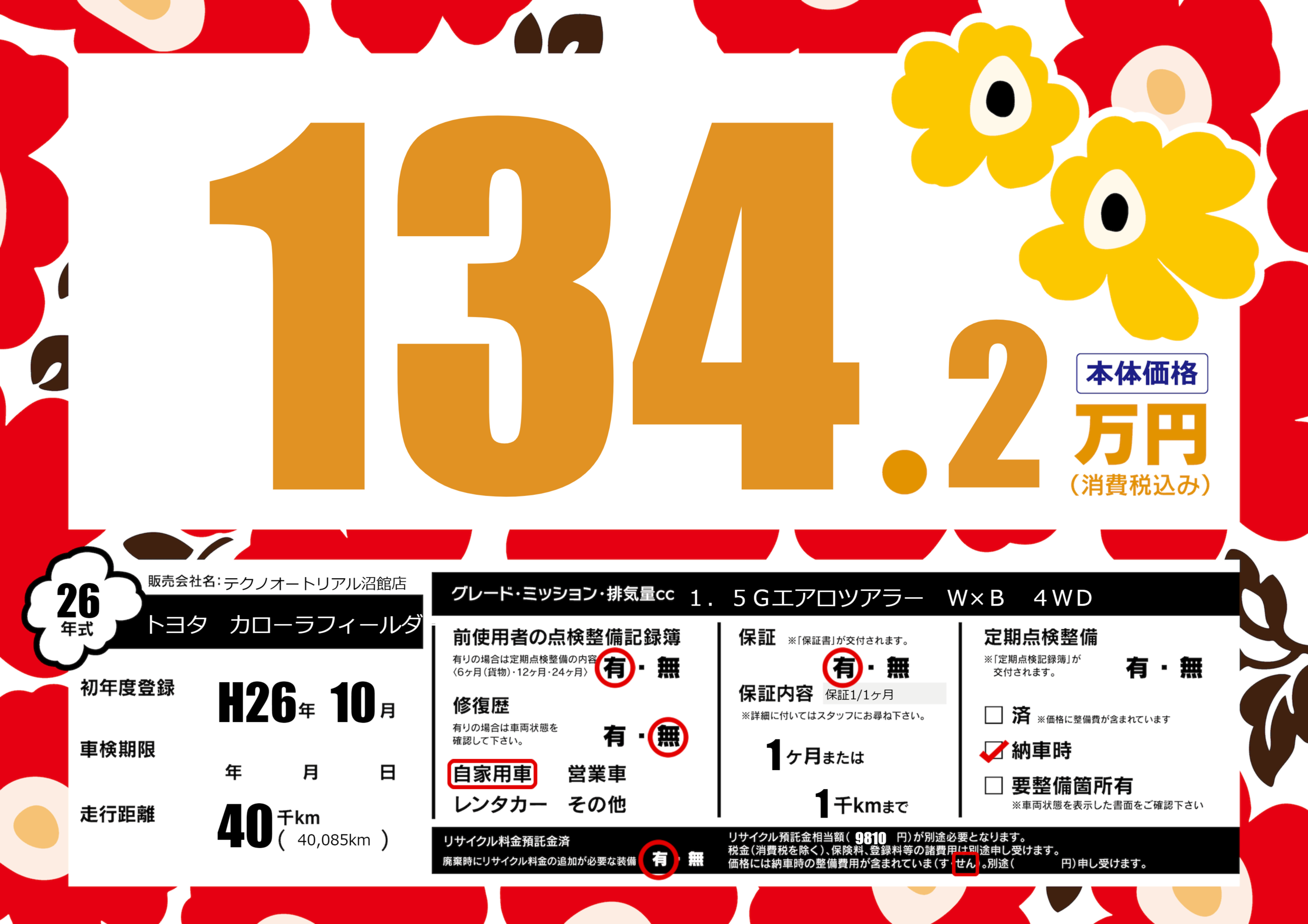 | 走行キロ | 4万km | ||