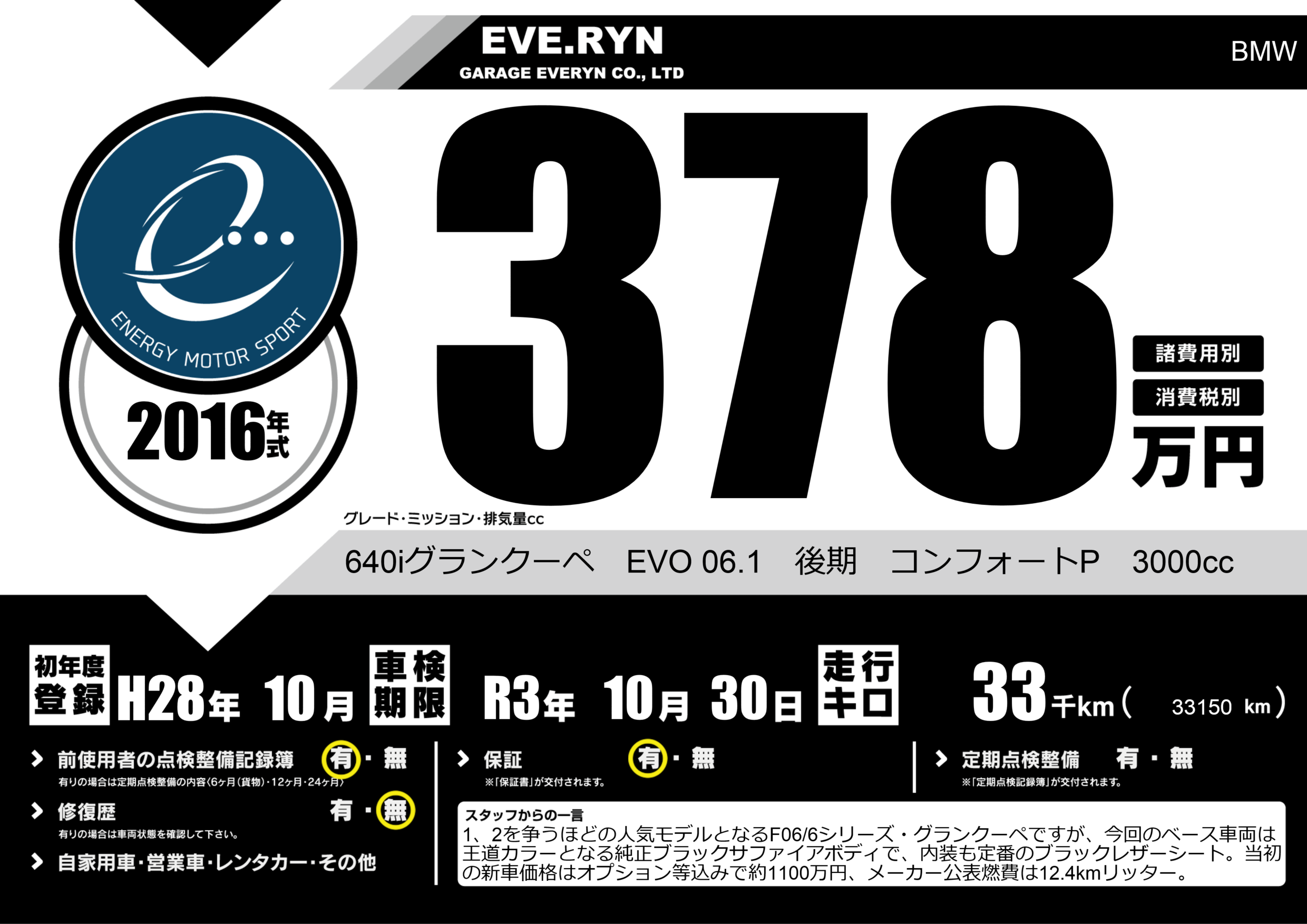 640iグランクーペ EVO 06.1 後期 コンフォートP 3000cc |