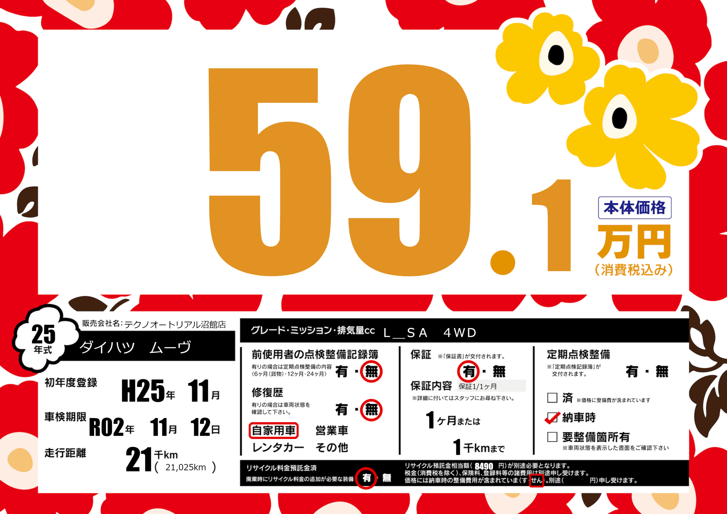 | 車名 | ダイハツ ムーヴ | グレード ミッション 排気量 |