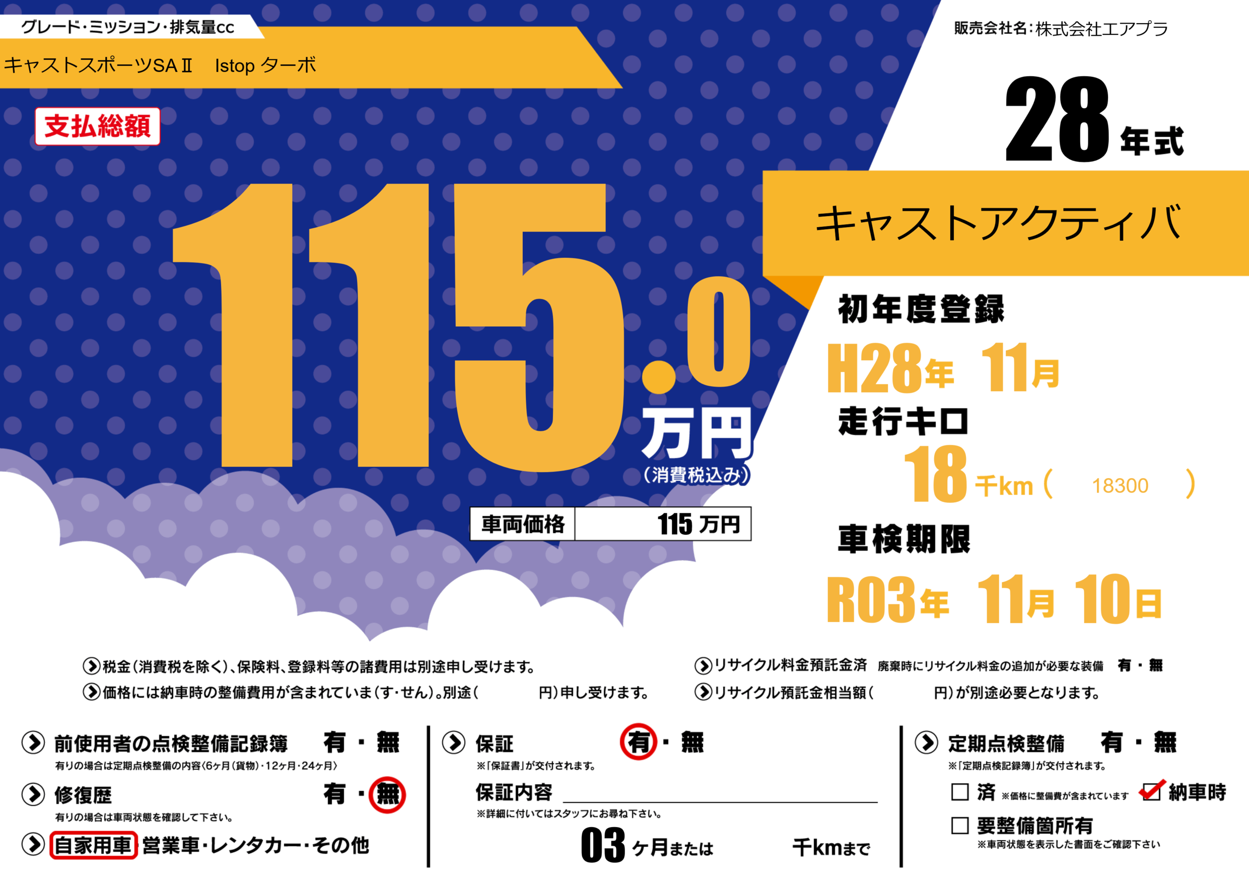 | 車名 | キャストアクティバ | グレード ミッション 排気量 |