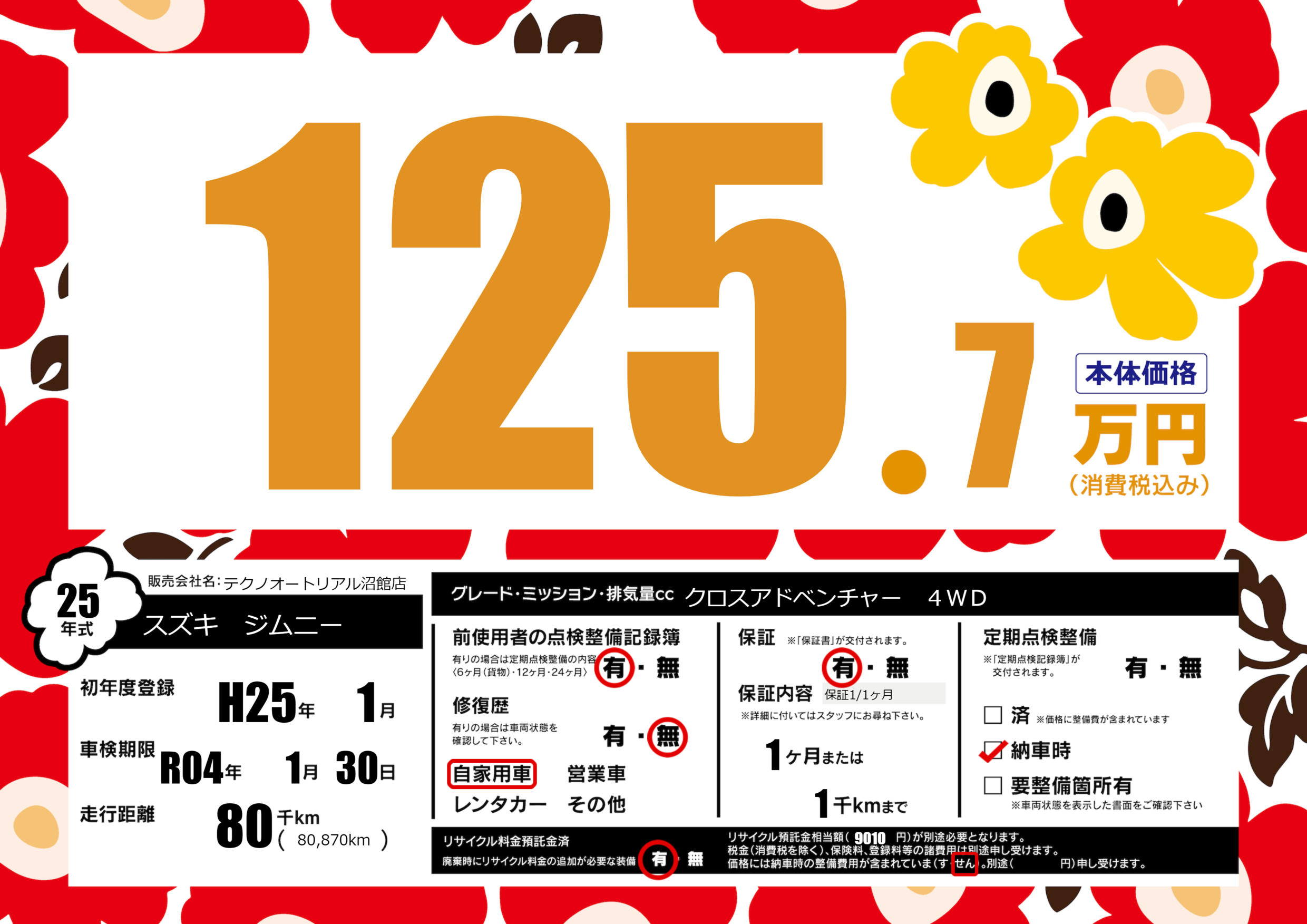 なし | 車検制限 | R04年1月30月 |