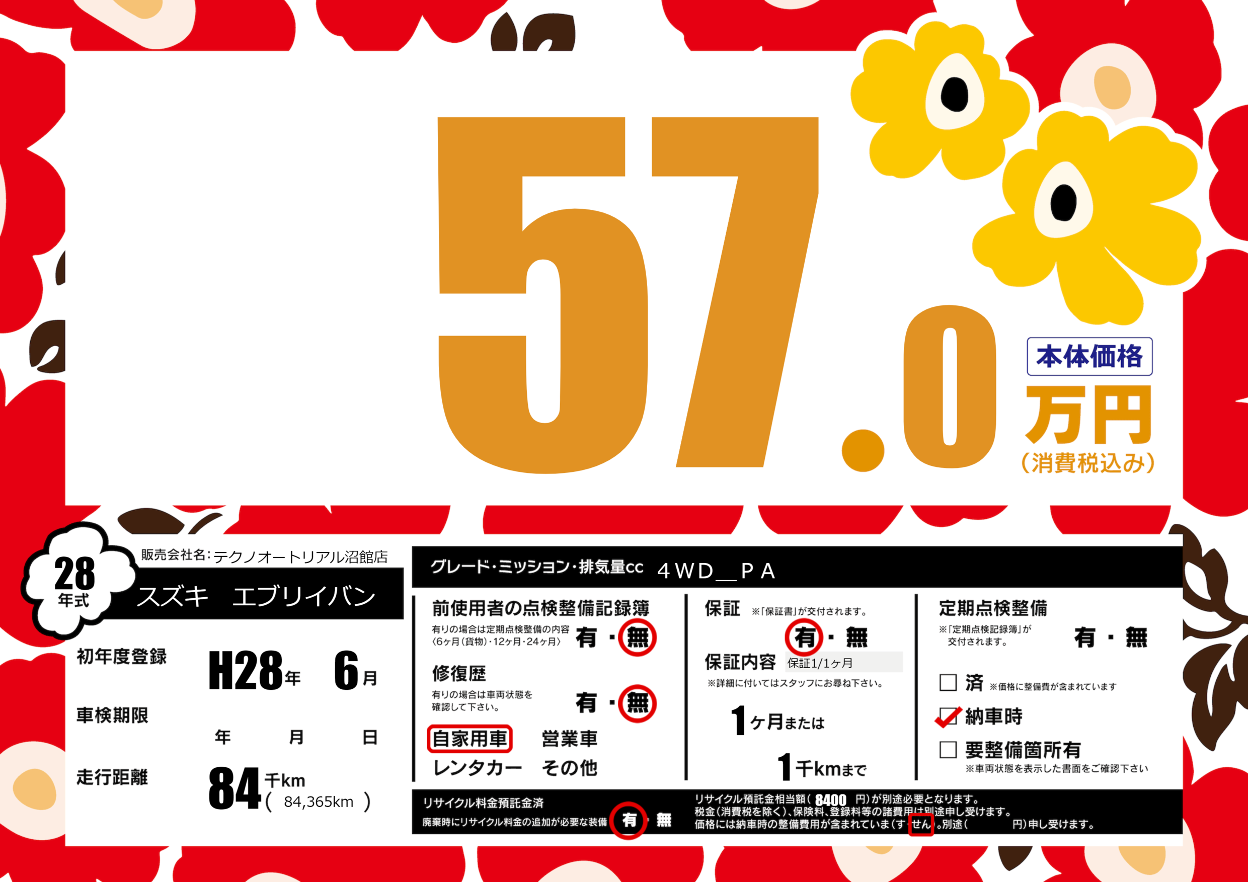 | 車名 | スズキ エブリイバン | グレード ミッション 排気量 |