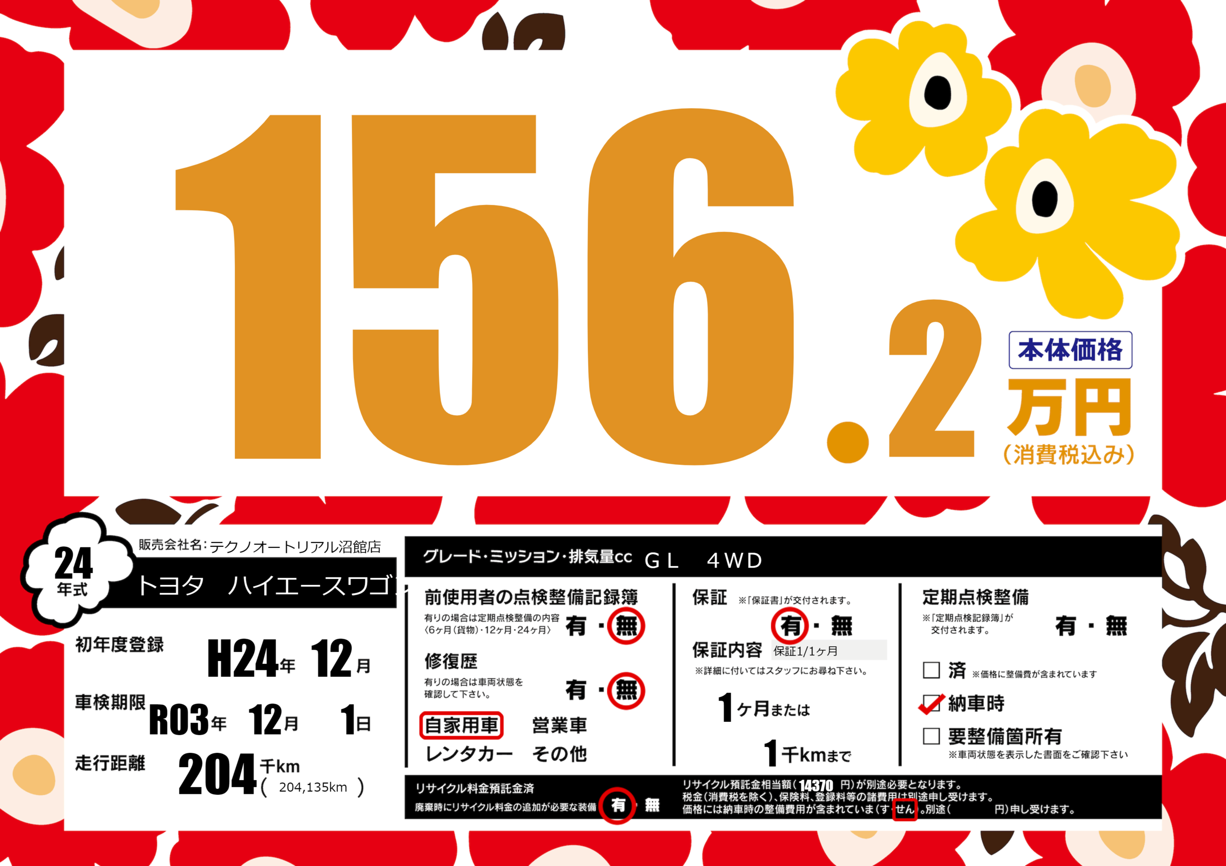 なし | 車検制限 | R03年12月1月 |