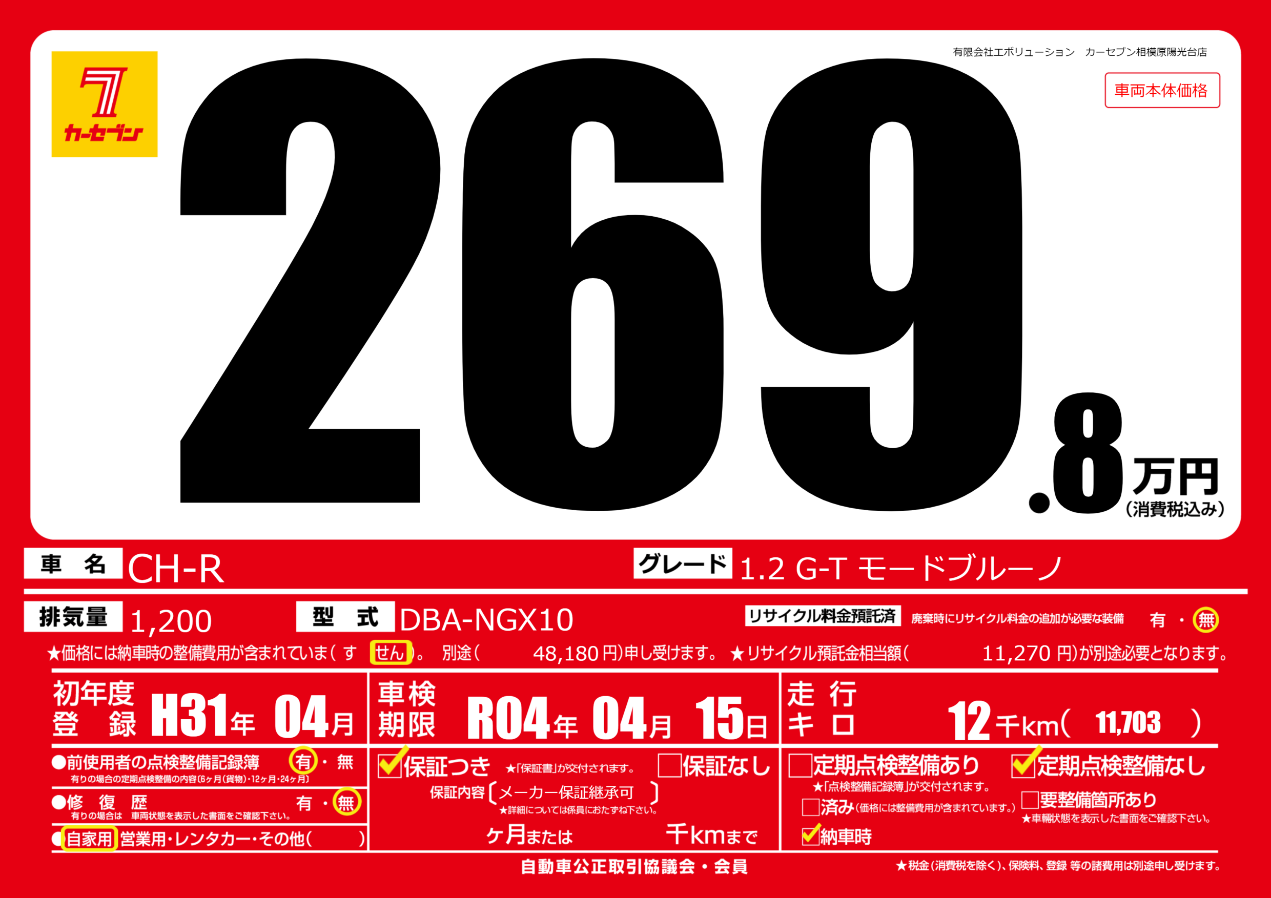 | 車名 | CH-R | グレード ミッション 排気量 |