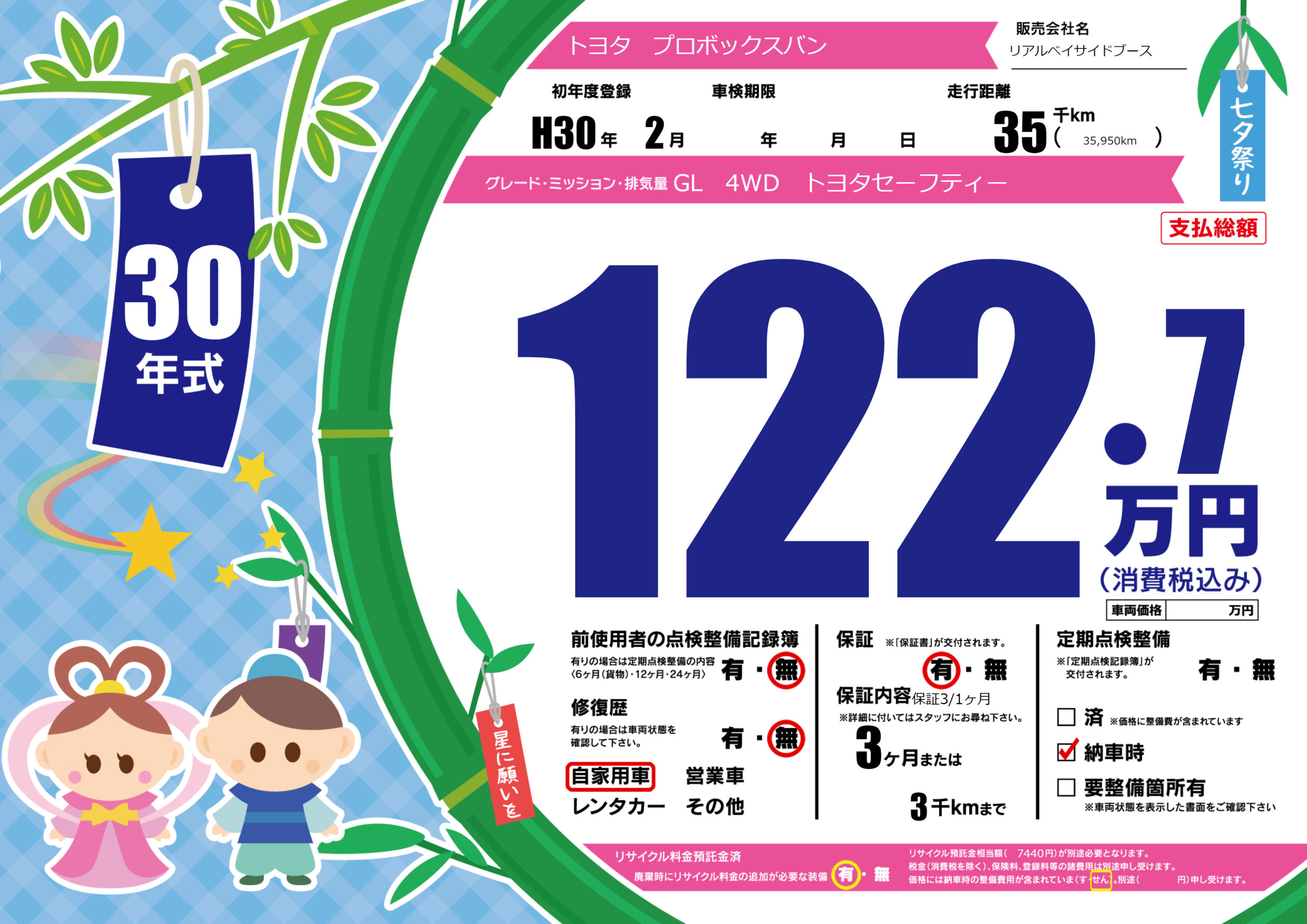 | 走行キロ | 3.5万km | 初年度登録 | H30年2月 |