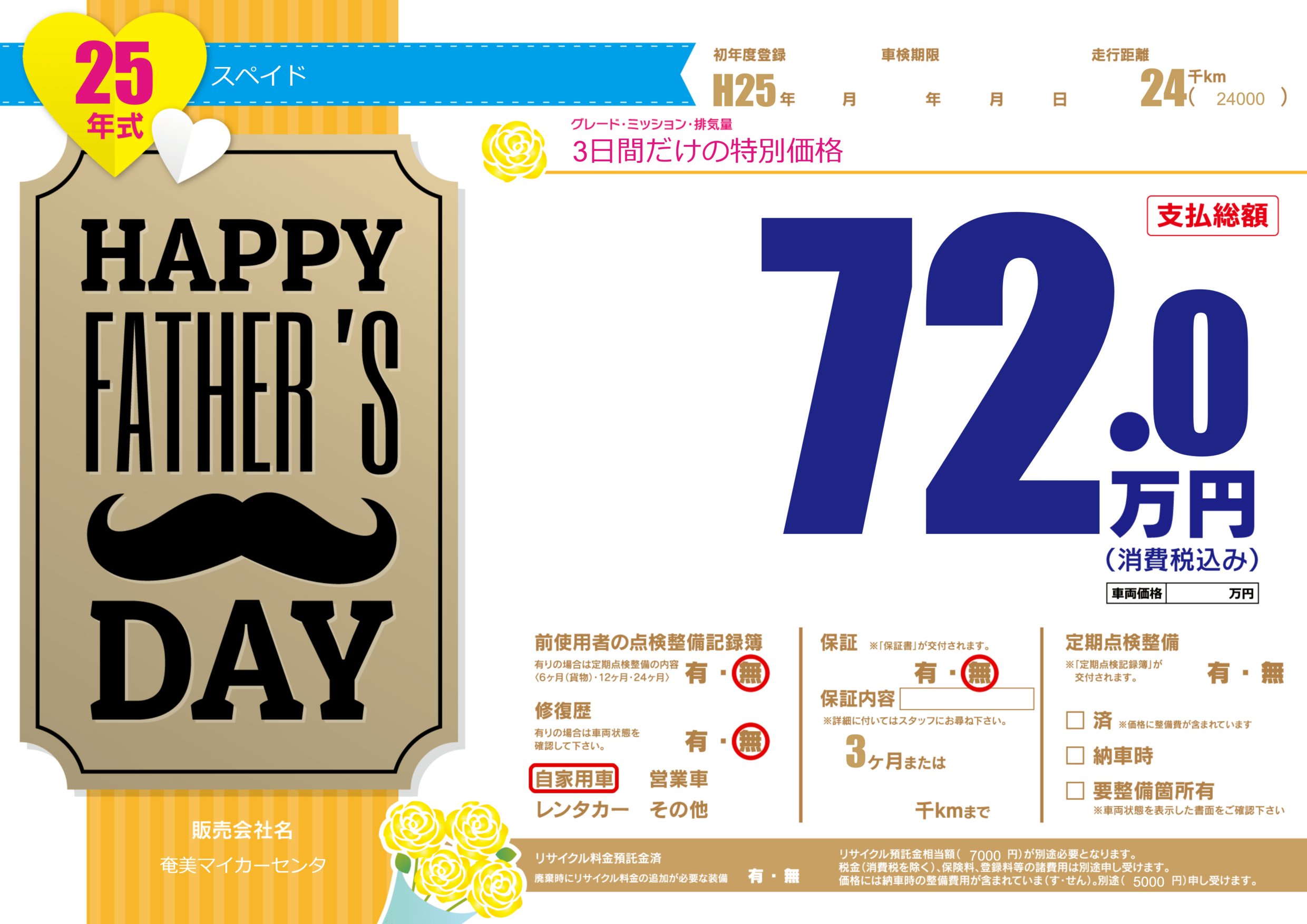 | 走行キロ | 2.4万km | 初年度登録 | H25年---月 |
