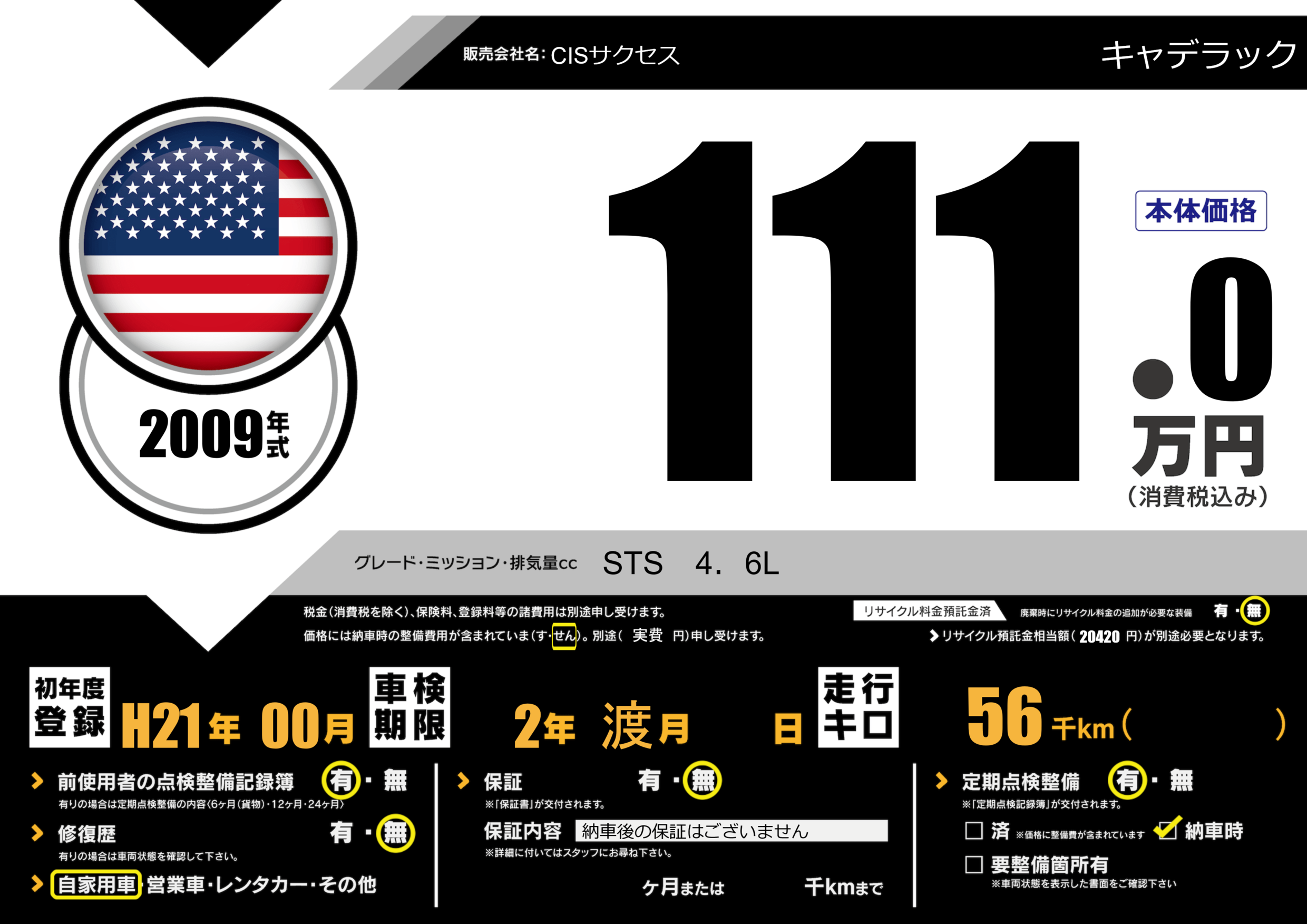 | 車名 | キャデラック | グレード ミッション 排気量 |