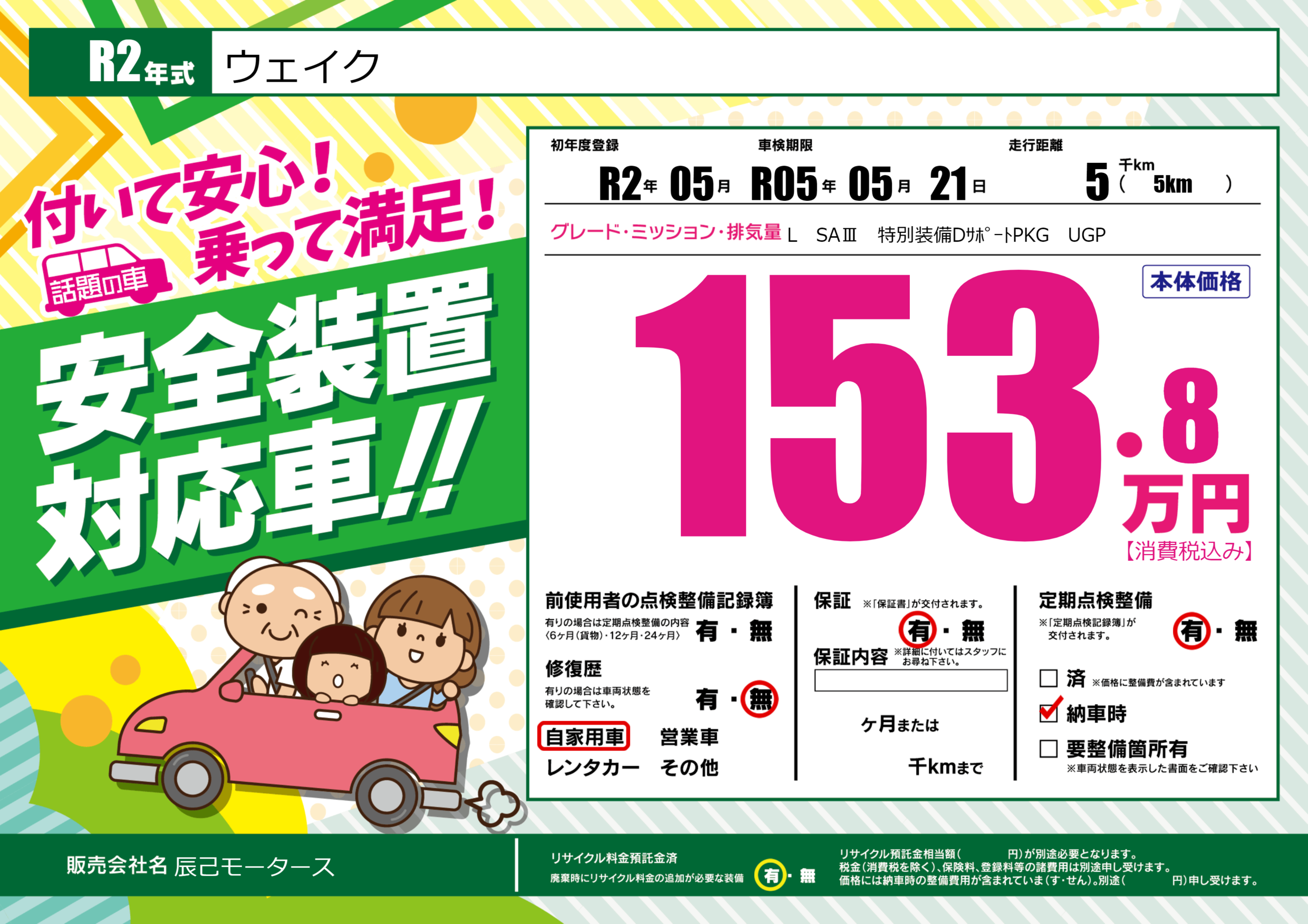 | 車名 | ウェイク | グレード ミッション 排気量 |