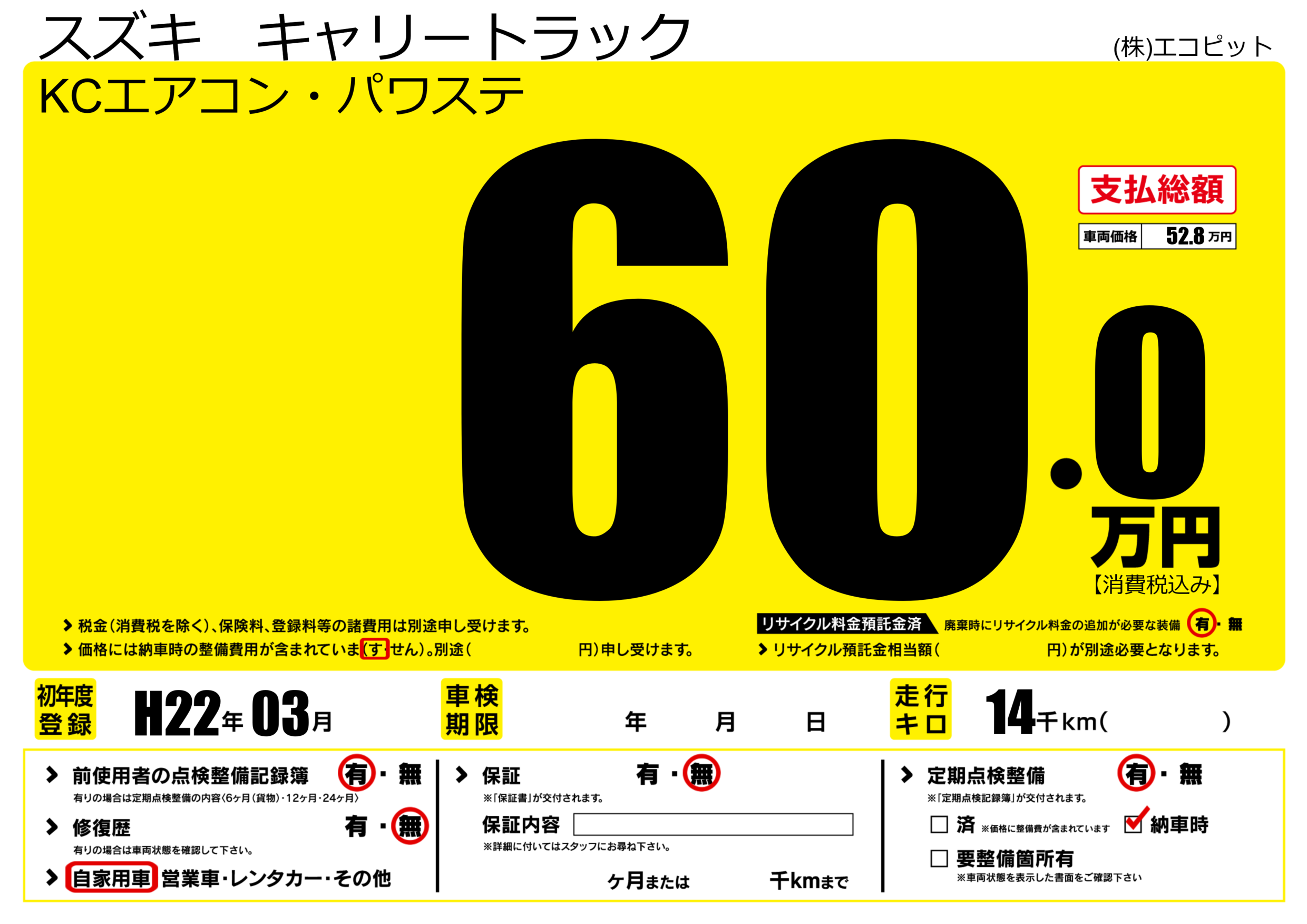 | 定期点検整備 | 定期点検整備あり 要整備箇所あり | ||