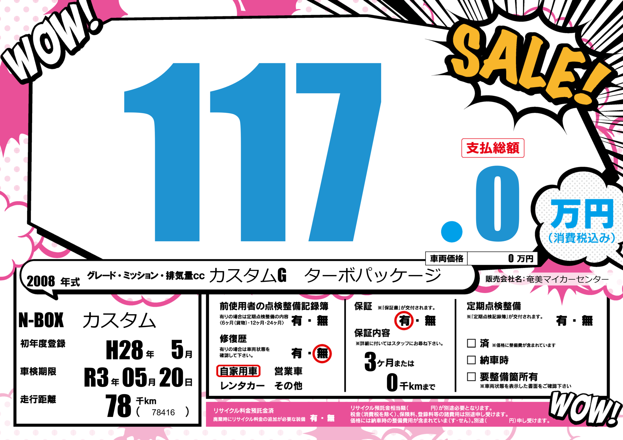 | 車名 | N-BOX カスタム | グレード ミッション 排気量 |