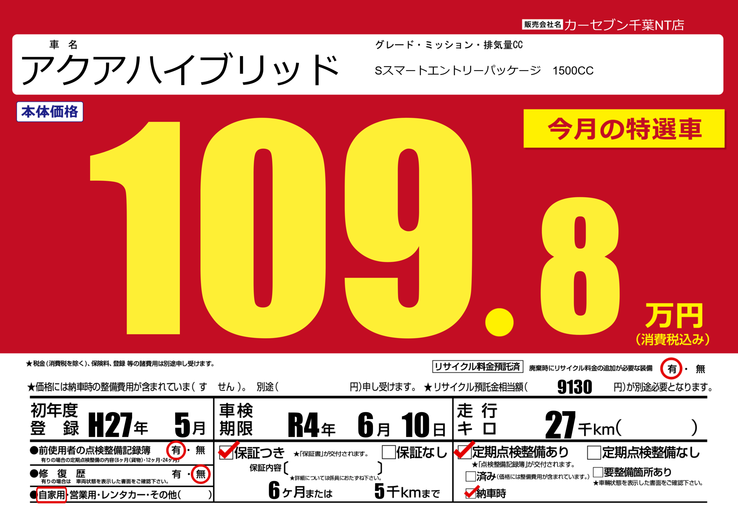 保証付き 保証内容(---) 6ヶ月または(5)千kmまで |