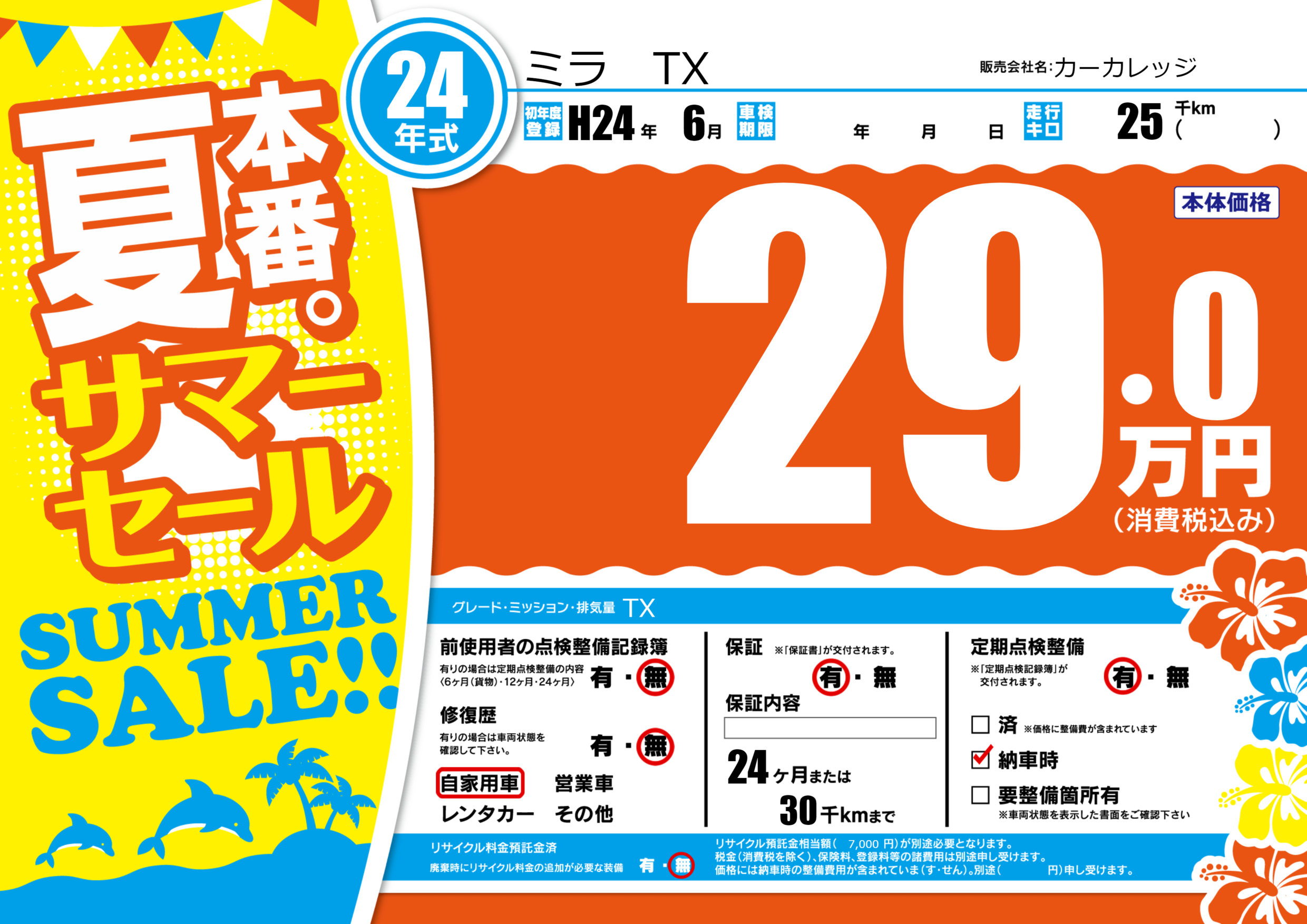 保証付き 保証内容(---) 24ヶ月または(30)千kmまで |