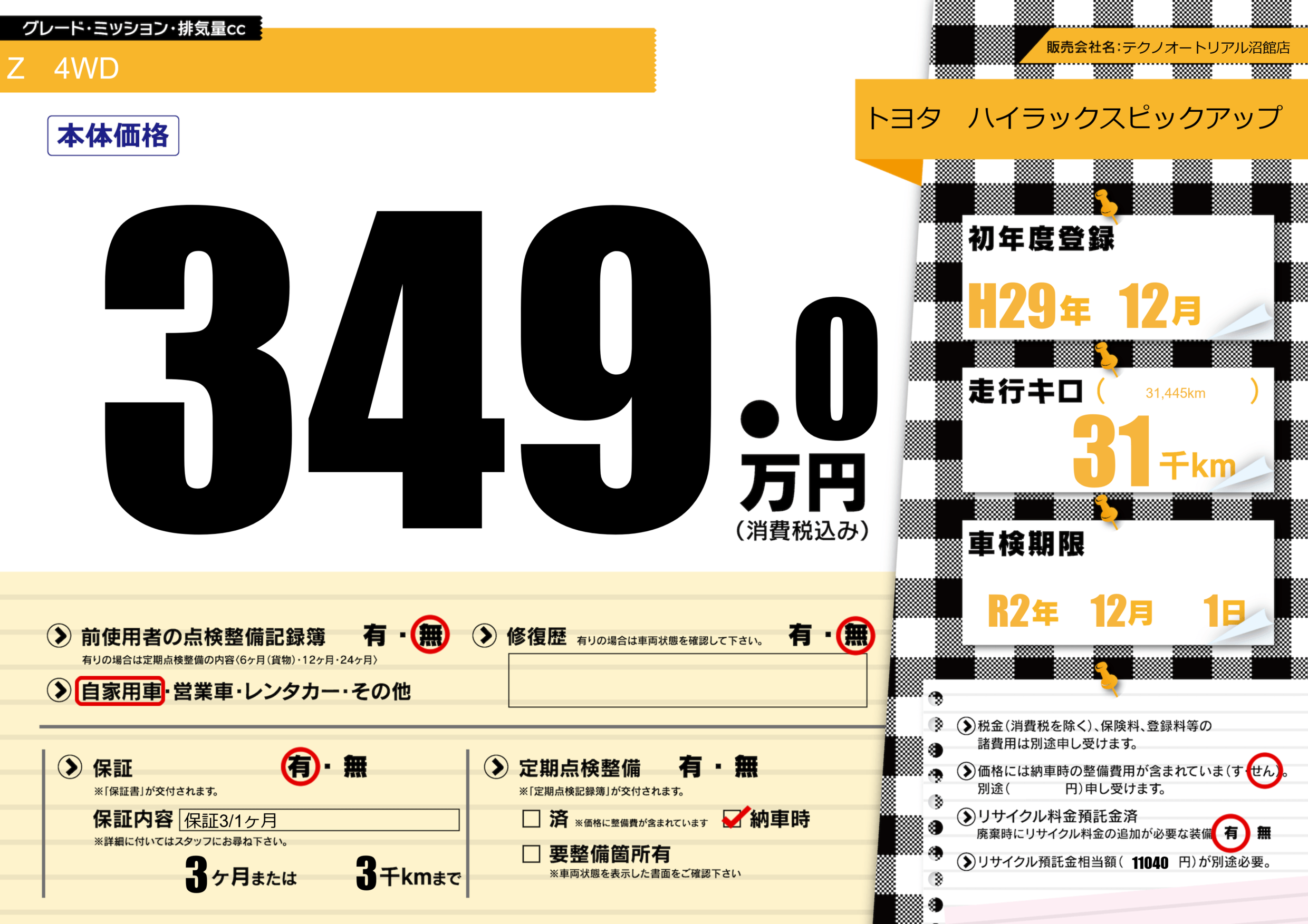 | 走行キロ | 3.1万km | 初年度登録 | H29年12月 |