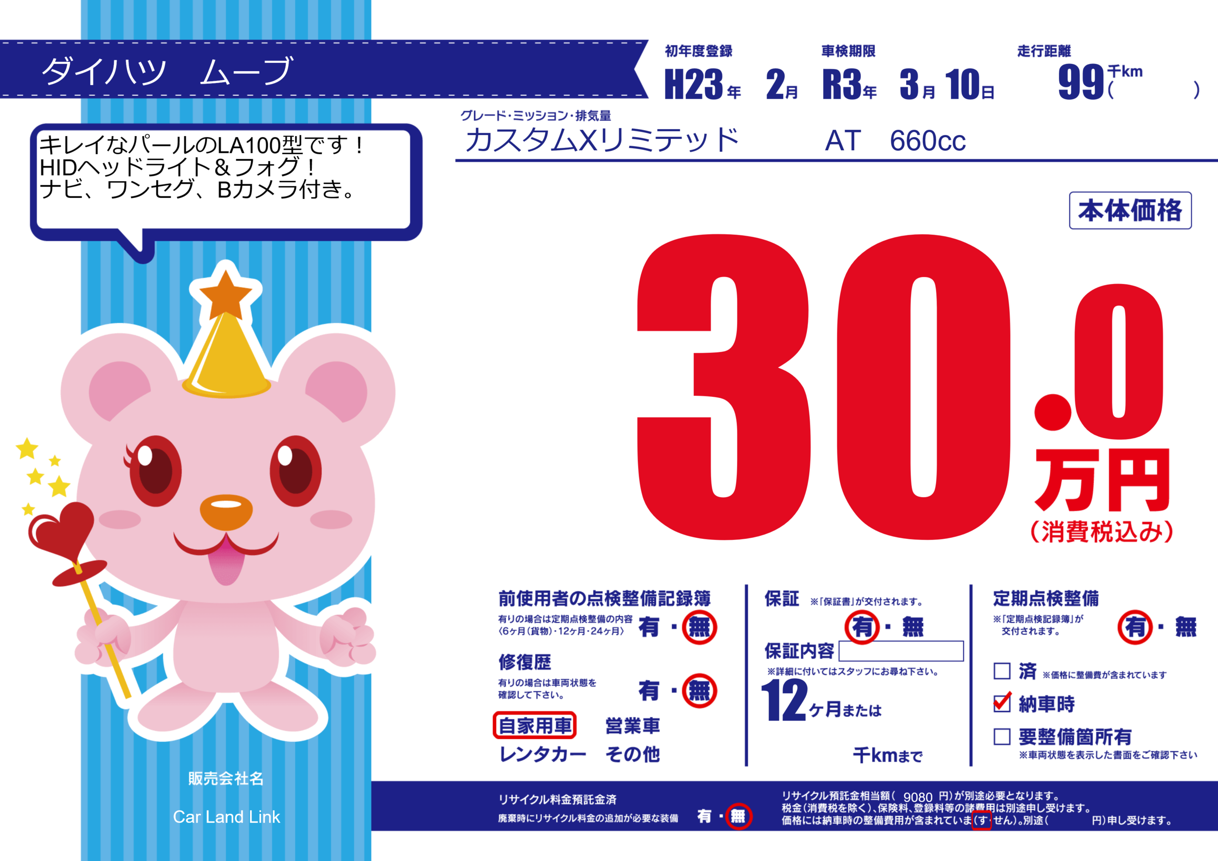 | 車検制限 | R3年 3月 10日 | ||