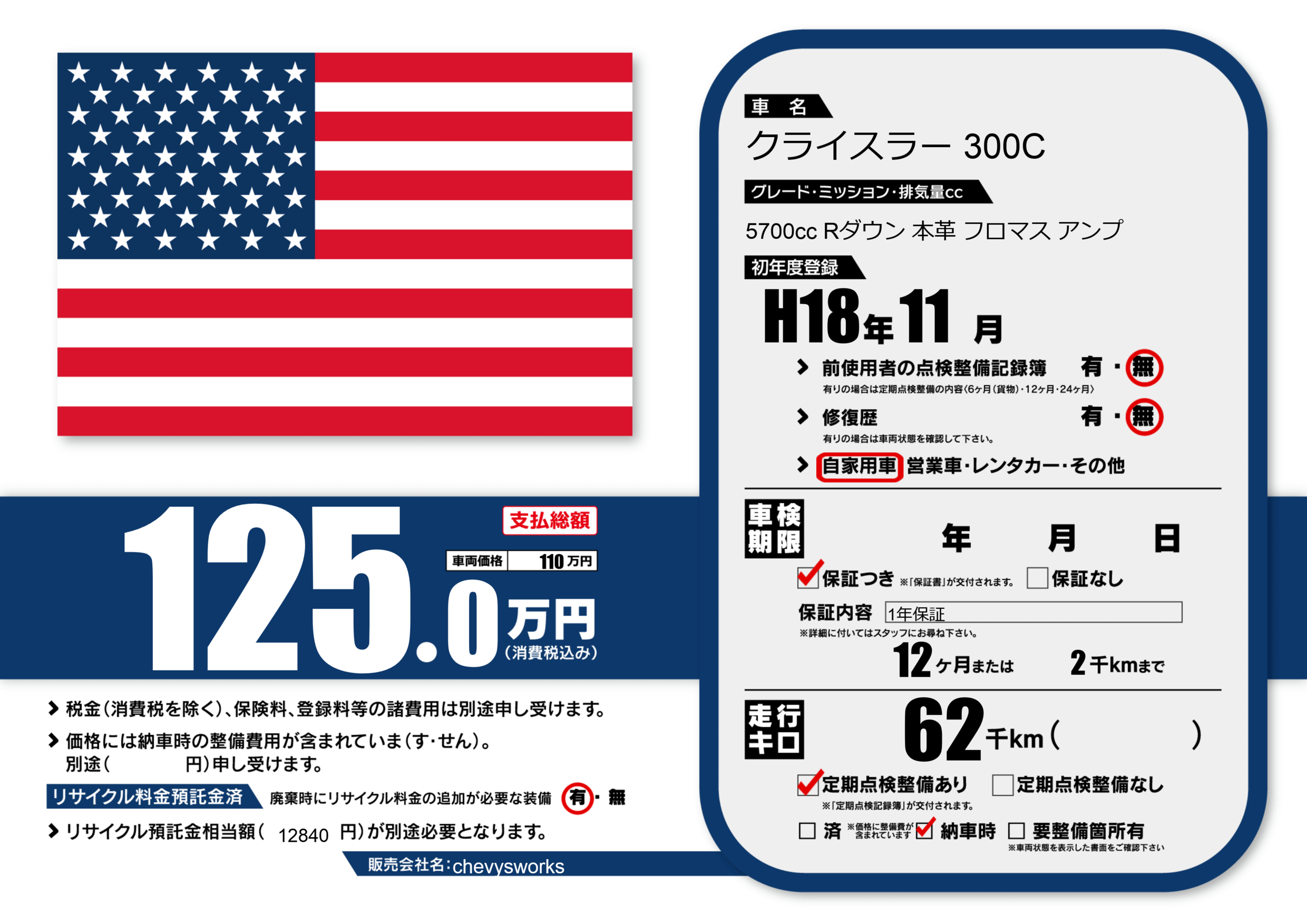 | 車名 | クライスラー 300C | グレード ミッション 排気量 |
