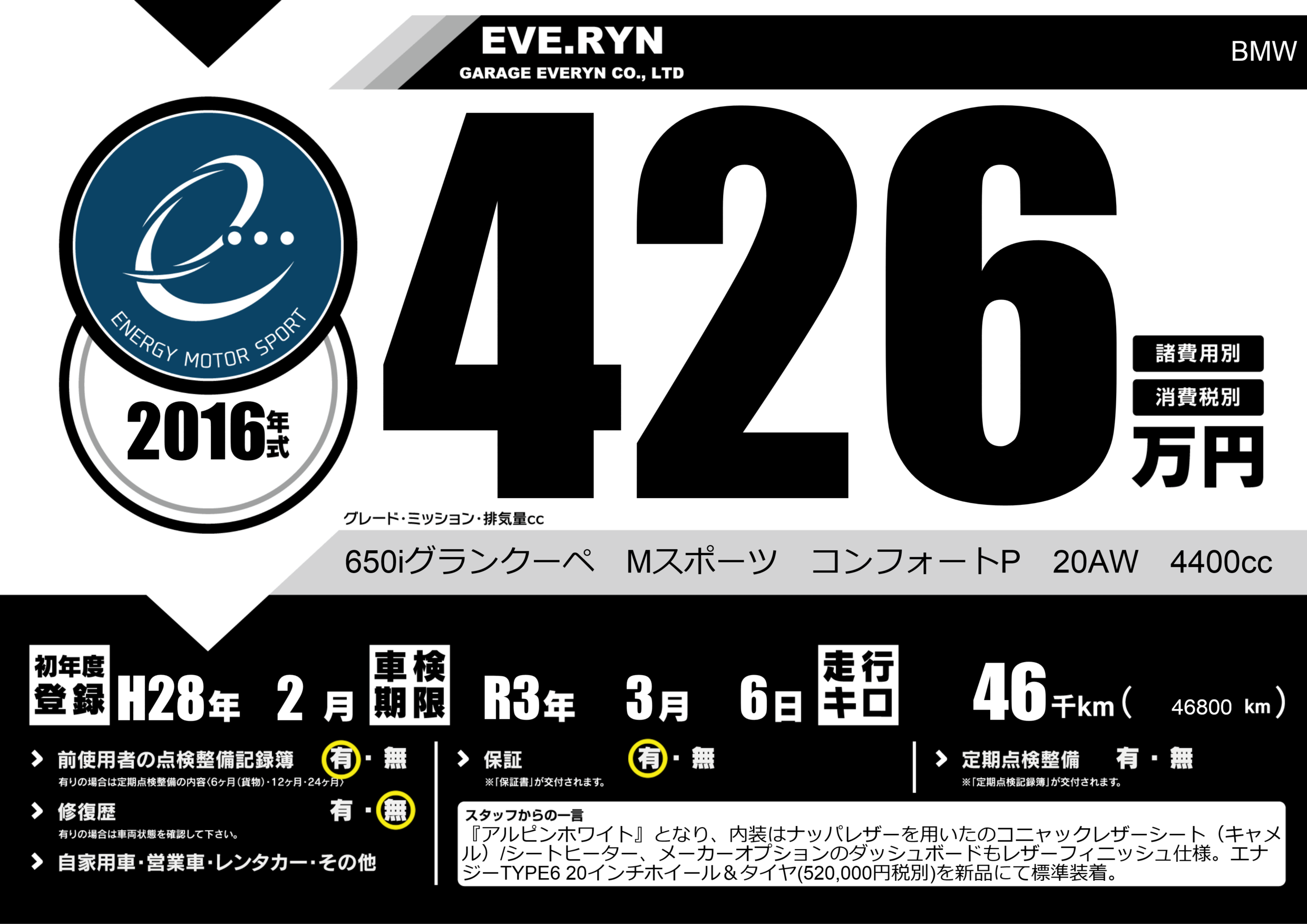 650iグランクーペ Mスポーツ コンフォートP 20AW 4400cc |